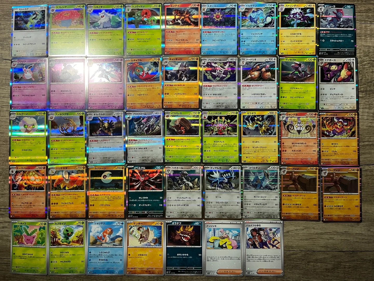 A variety of over 100 Japanese Pokemon and trainer cards, including many rare holo cards. All cards are in near-mint condition.