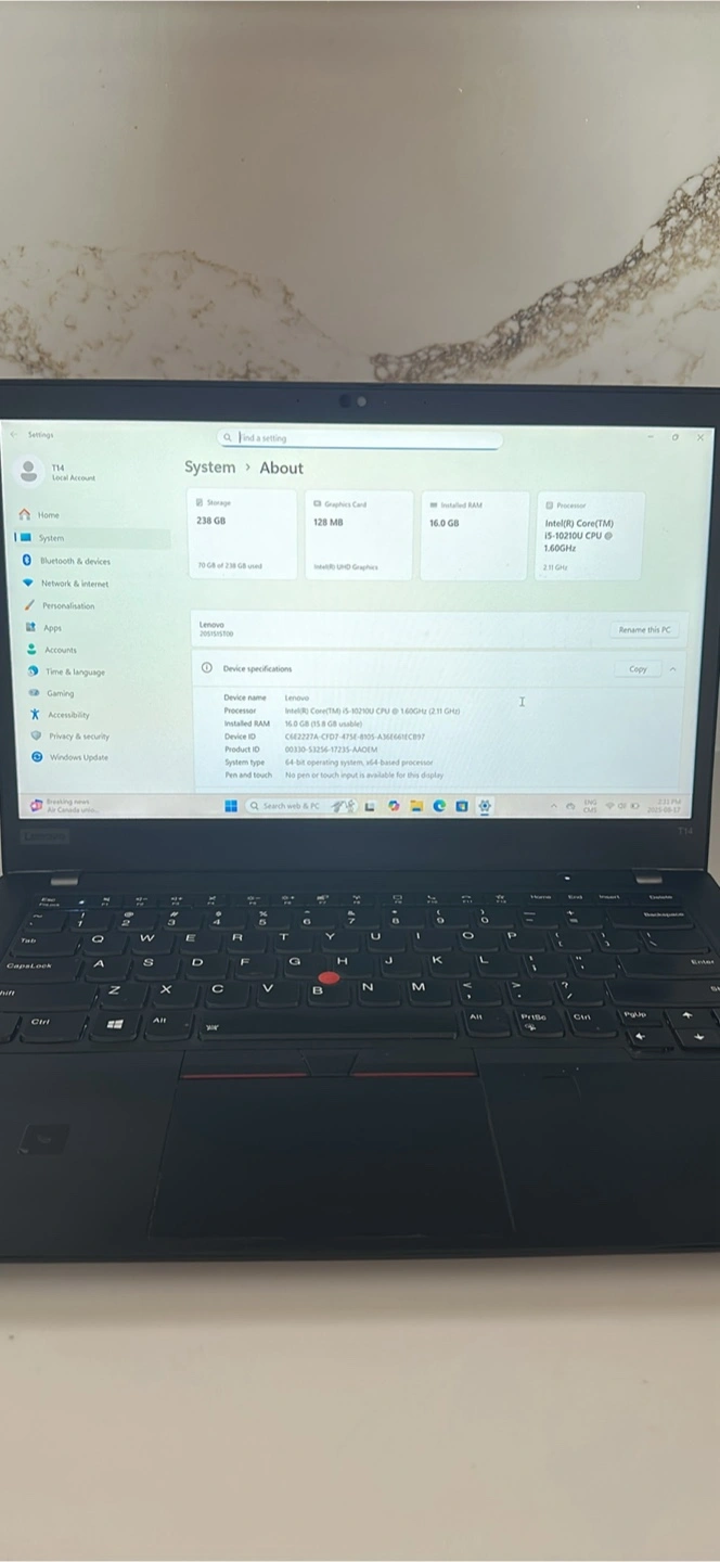 Lenovo ThinkPad T14 Gen 1 with charger.