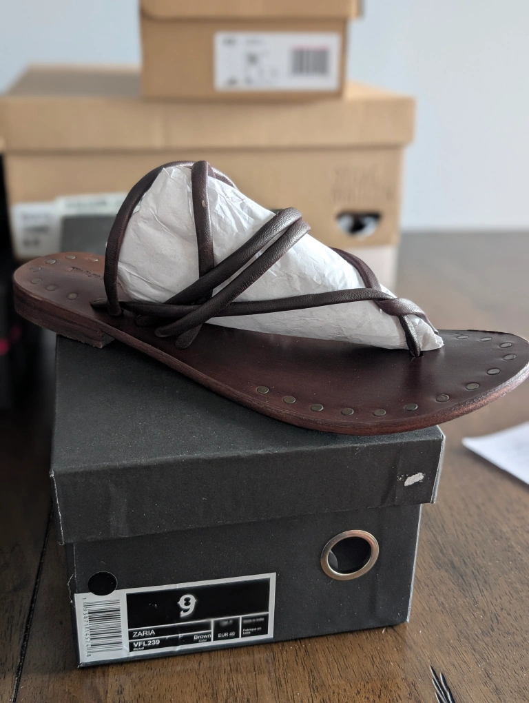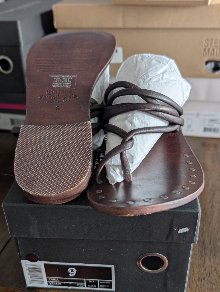These Vintage Foundry Co. Zaria sandals are in brand new condition and ready for a new home! They are a size 9 and come in a stylish brown colour. The box is included