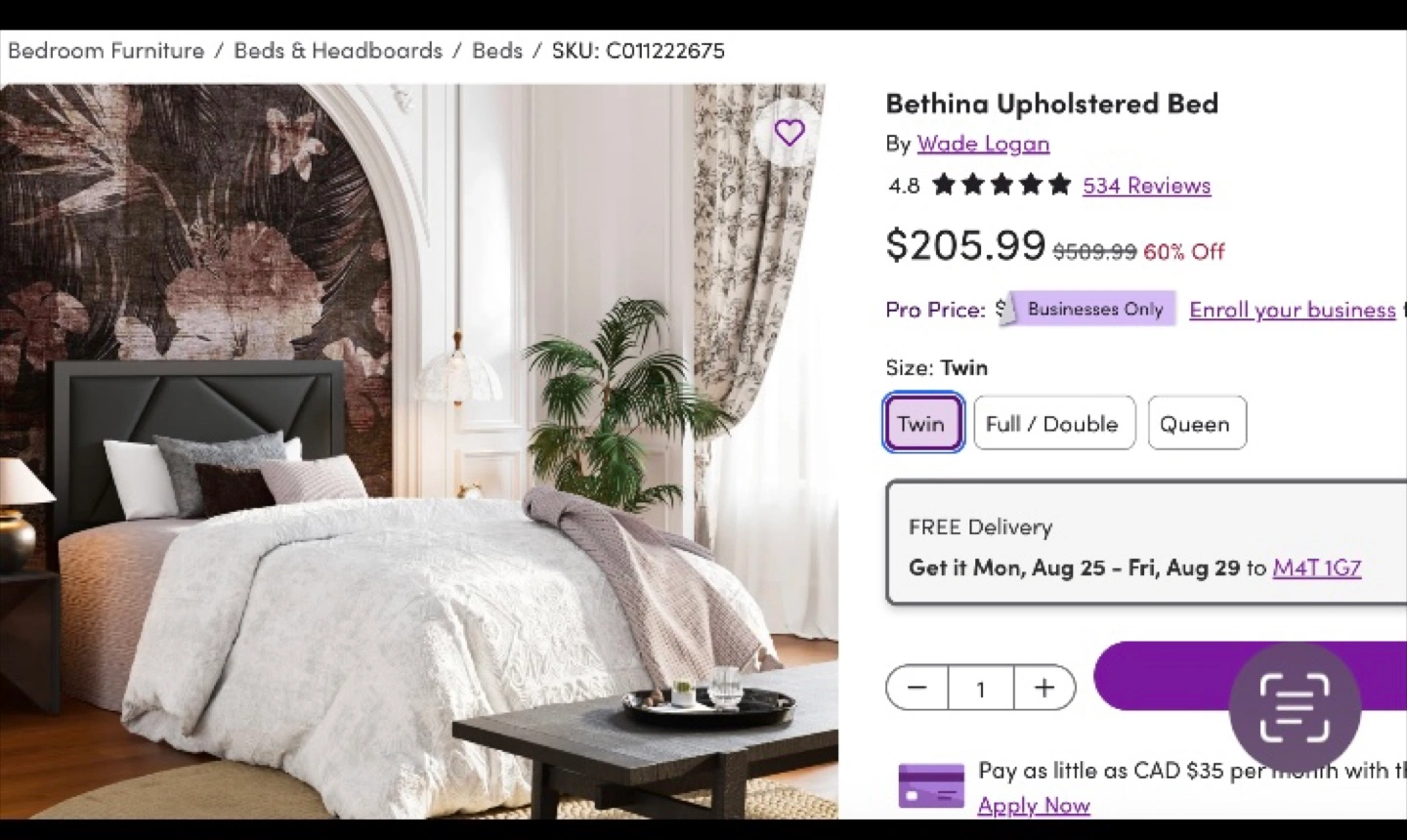 Selling a twin-size Bethina Upholstered Bed! It features a faux leather and metal construction with a weight capacity of 300 lbs. The bed frame dimensions are 77.4" x 40.8" x 41.8". It's designed with a stable construction, mattress fixation, and protective pads