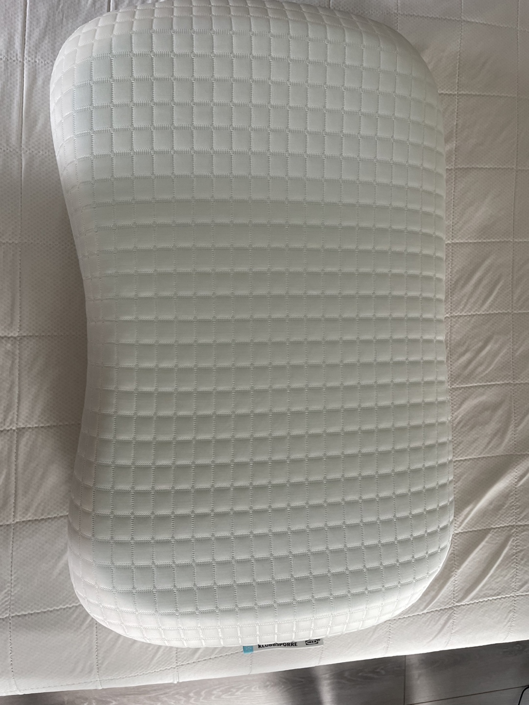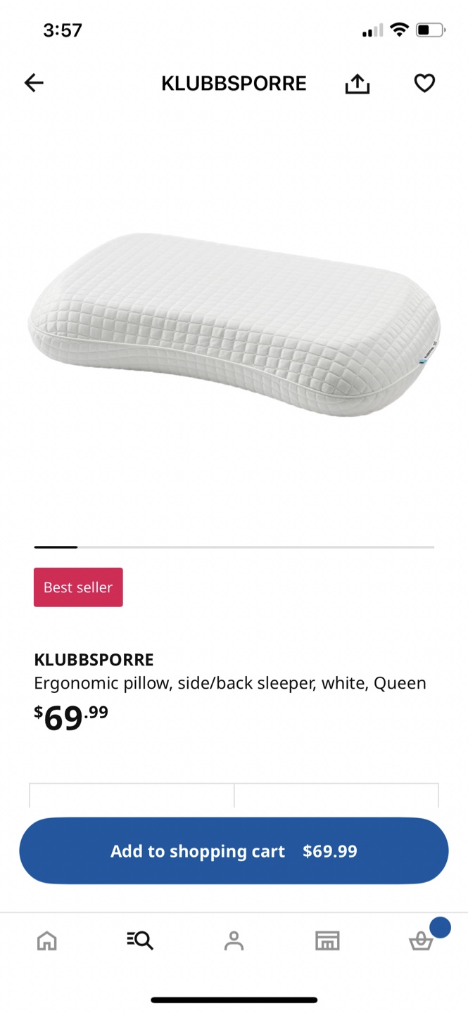 Looking to sell an IKEA KLUBBSPORRE ergonomic pillow designed for side/back sleepers. It's white and Queen size. Originally bought for $69.99.