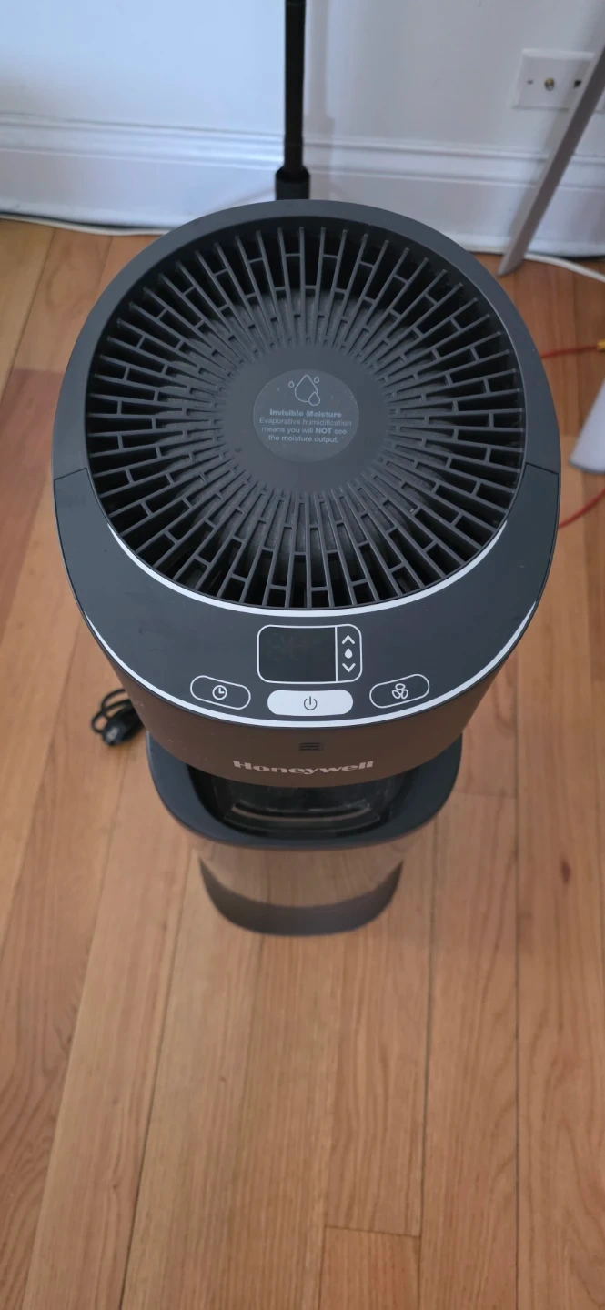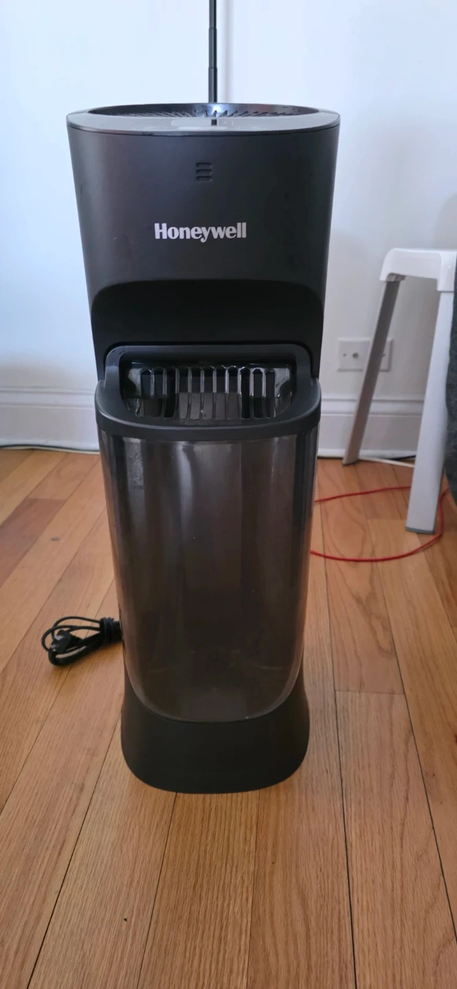 Honeywell humidifier with a large capacity tank. This unit features an invisible moisture output. It's a wicking filter model.