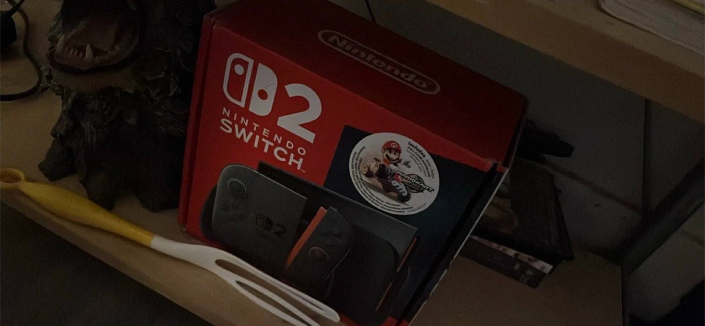 This is a Nintendo Switch 2 gaming console. It comes with the console and accessories. Includes original box and a carrying case. Great for on-the-go gaming!