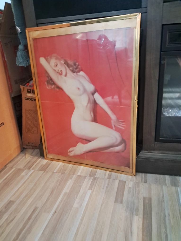 Here is a framed print of Marilyn Monroe. It's a striking black and white image in a gold frame. Perfect for adding a touch of classic Hollywood glamour to your space! It's a back to back print.