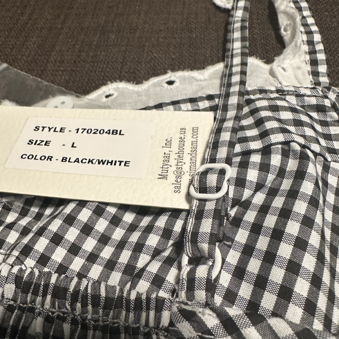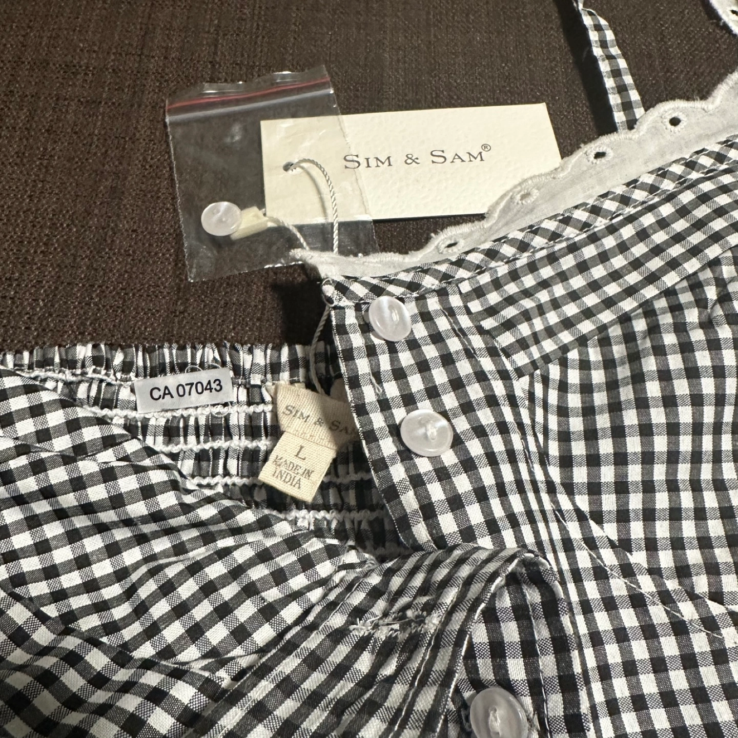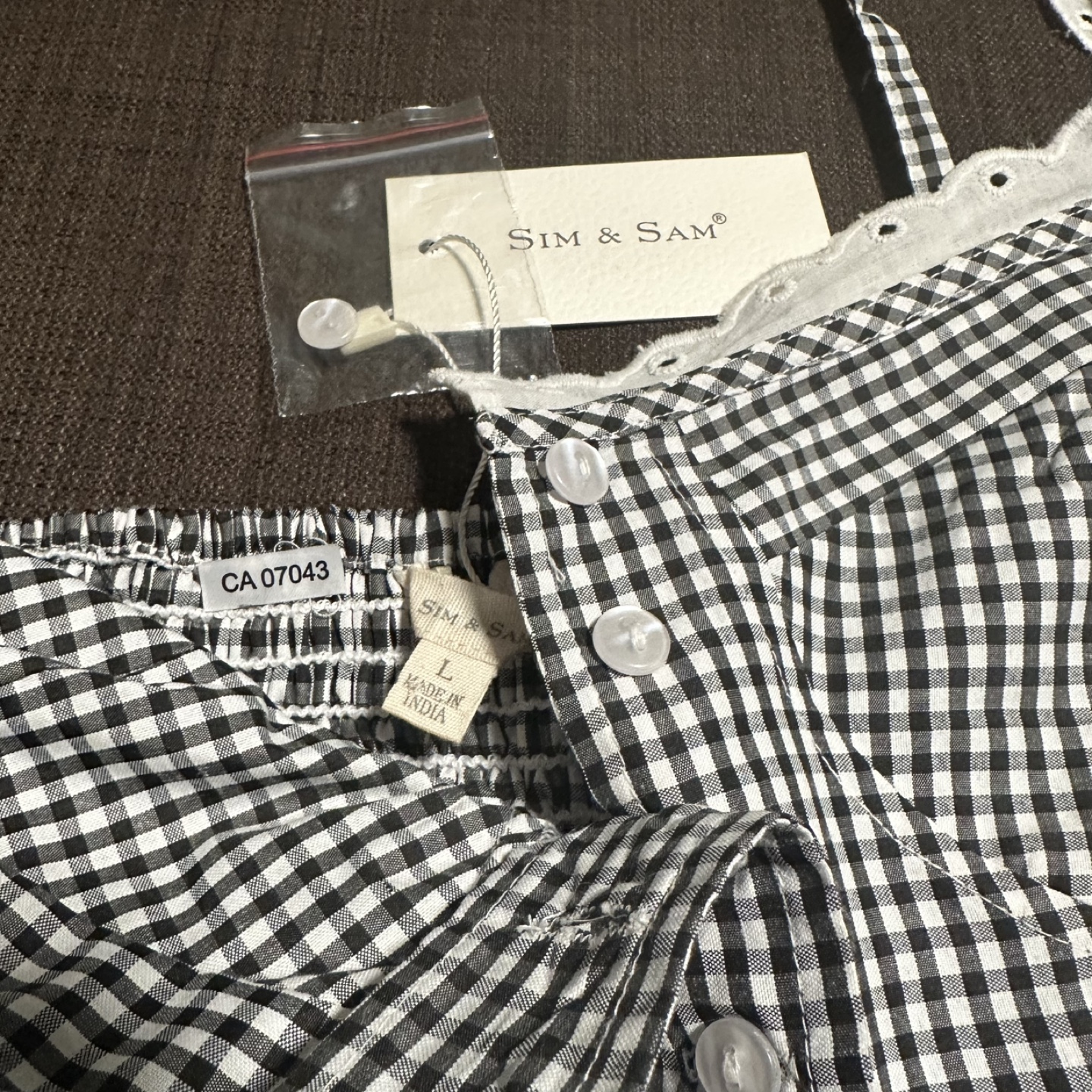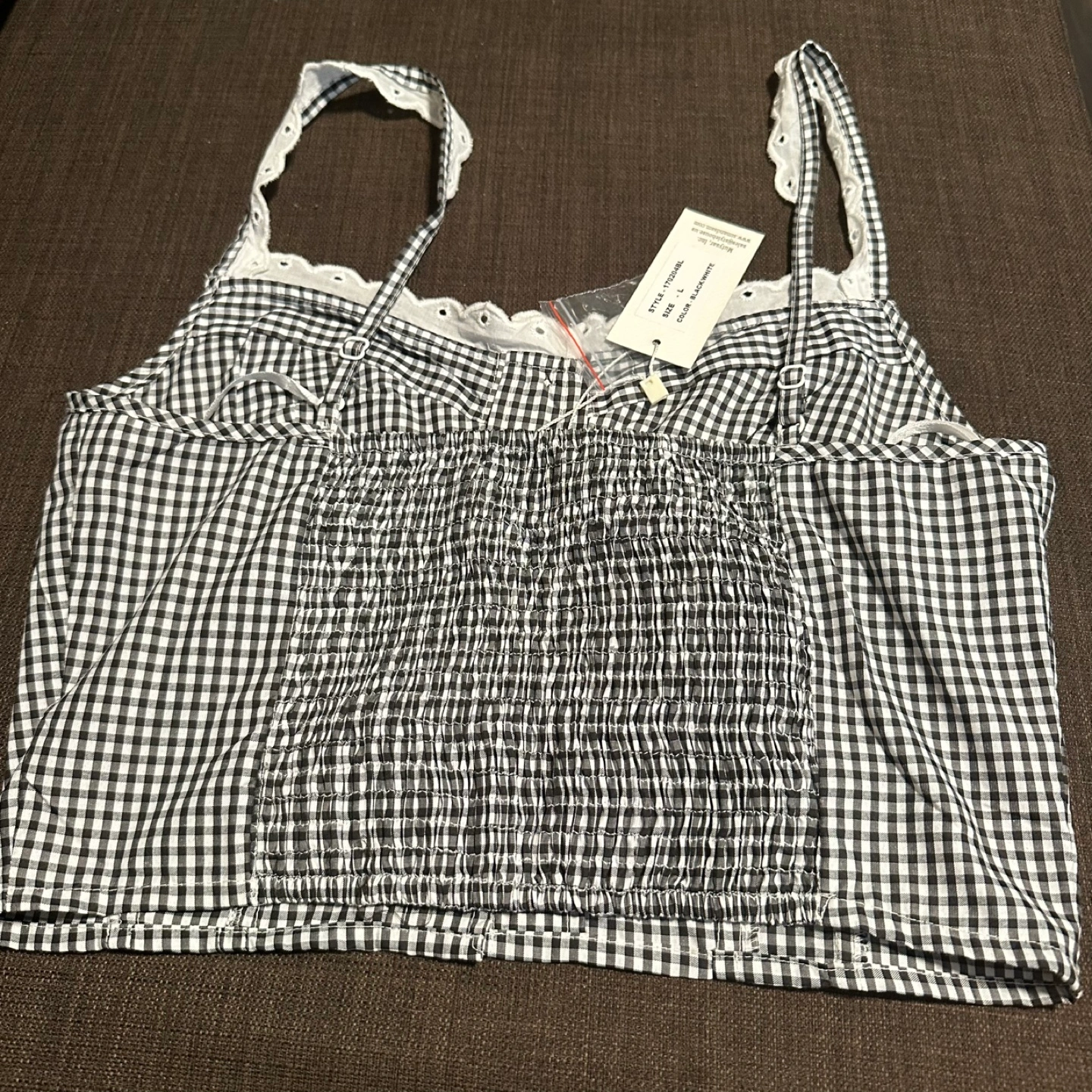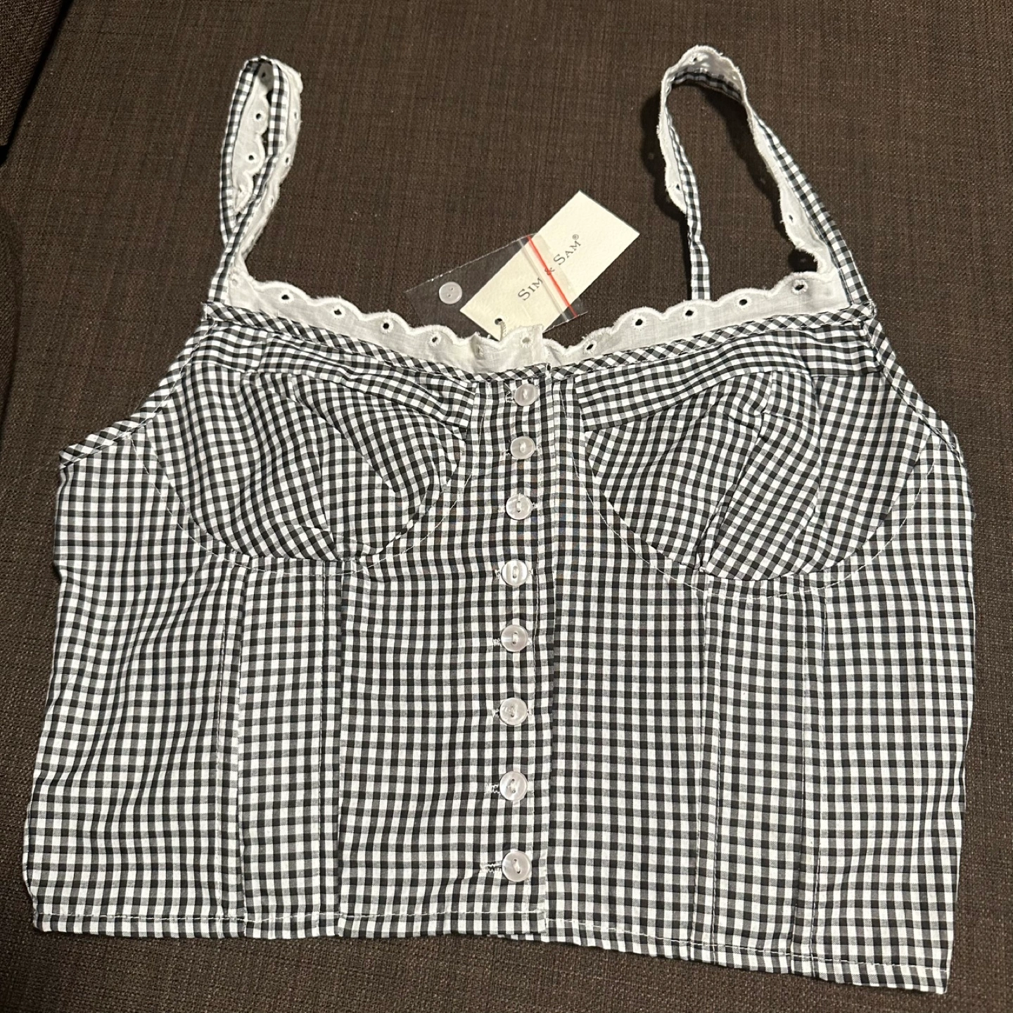 This is a brand new Sim & Sam cotton crop top! It features a cute gingham pattern in black and white. The top is a size large and has adjustable straps. It has a style number of 170204BL. Perfect for summer!