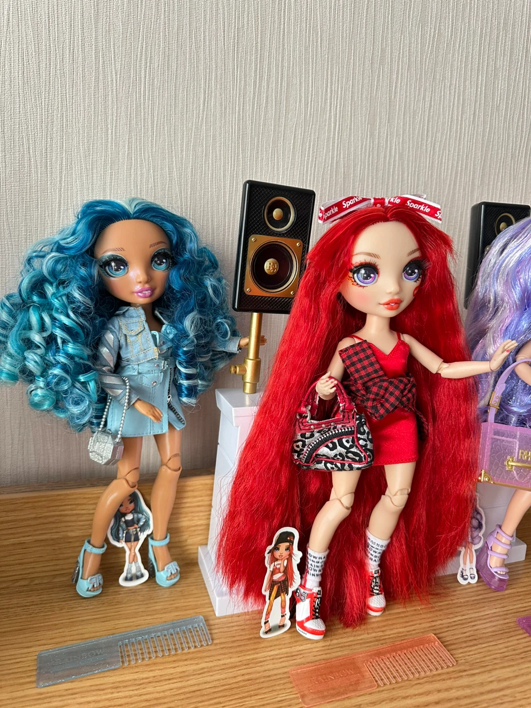 Selling a set of four Rainbow High dolls! They come with their beautiful outfits and accessories, as shown in the pictures. A great addition to any doll collection!