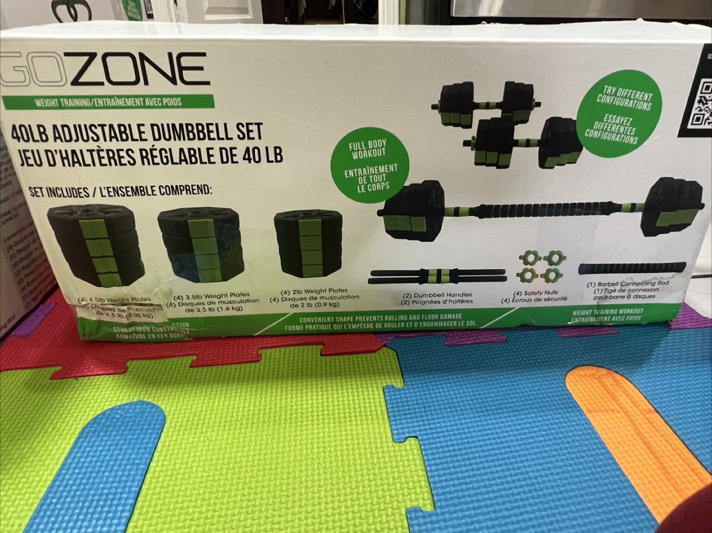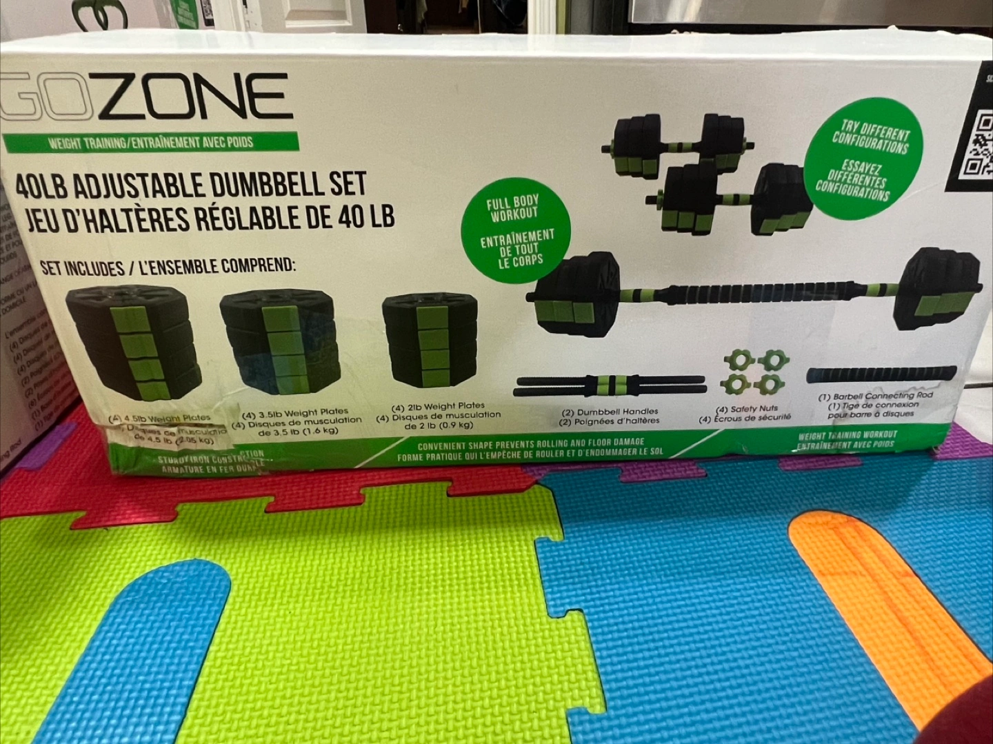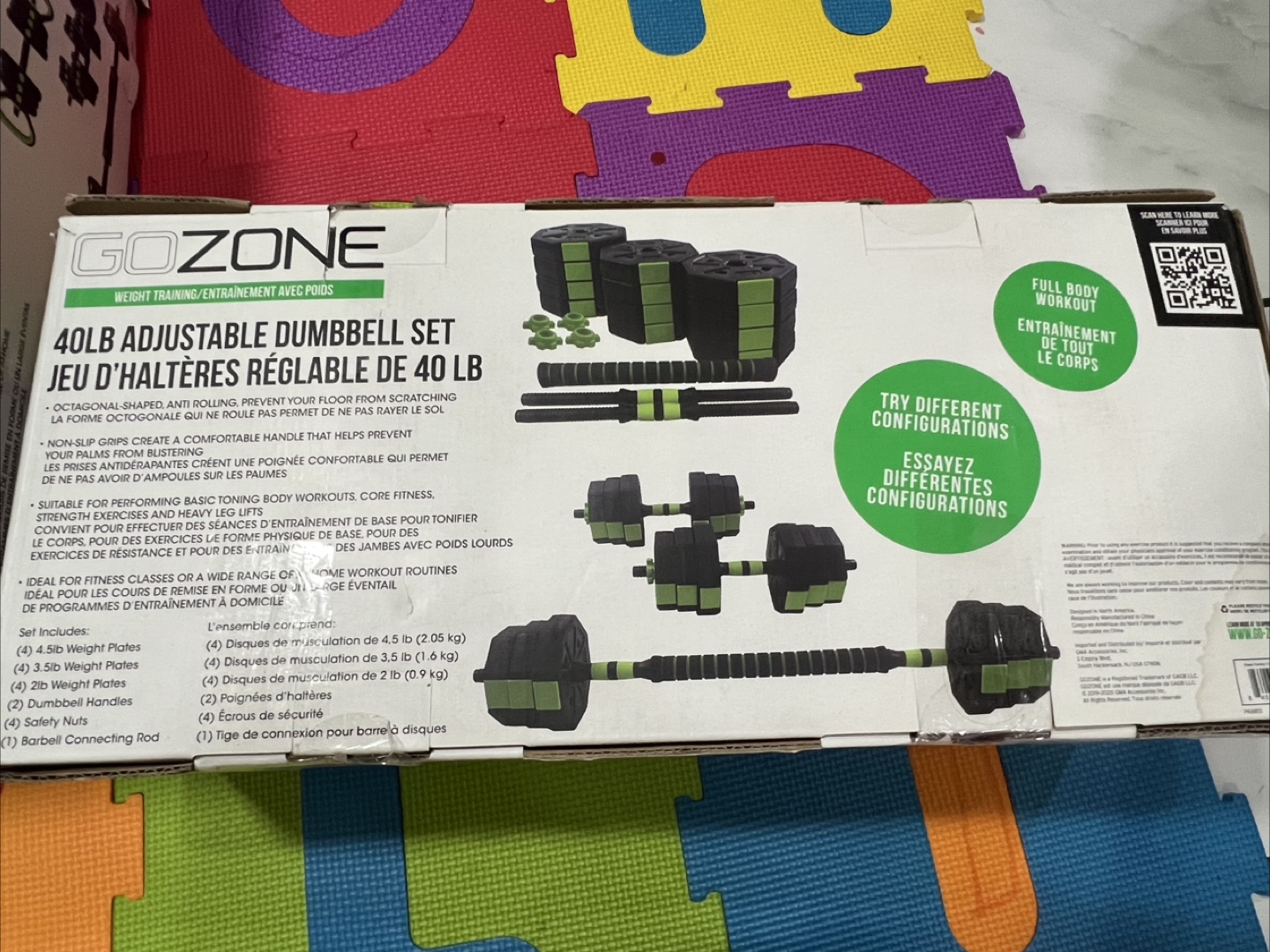 Selling a brand new GoZone 40lb adjustable dumbbell set! It's perfect for full body workouts and toning exercises. The set includes: