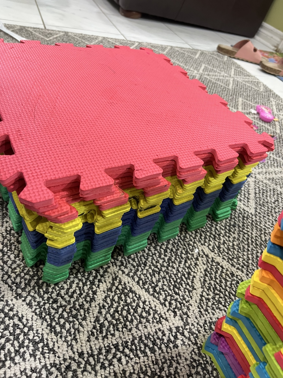 Selling a set of foam play mat tiles in various colours! These are great for creating a safe and soft play area for kids. They're easy to clean and assemble, perfect for any playroom or nursery
