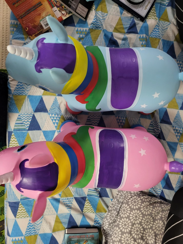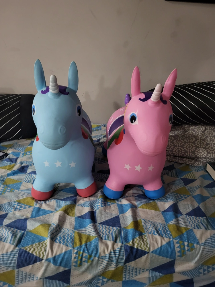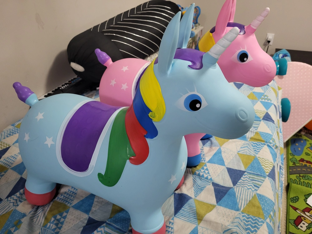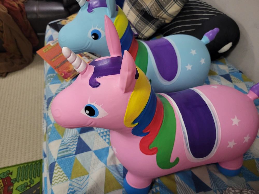 These inflatable unicorn hopper toys are ready for a new home! One is blue and the other is pink. Perfect for active play and bouncing around the house! Each is $10, both $20