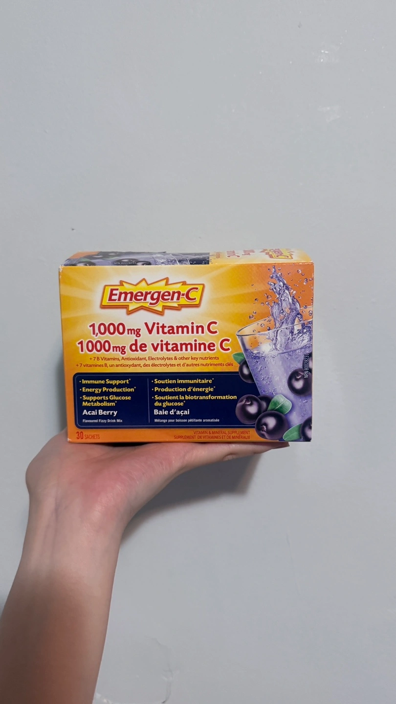 Got a box of Emergen-C Acai Berry flavoured fizzy drink mix! Each sachet has 1,000mg of Vitamin C, plus 7 B Vitamins, antioxidants, and electrolytes. It supports your immune system, energy production, and glucose metabolism.
