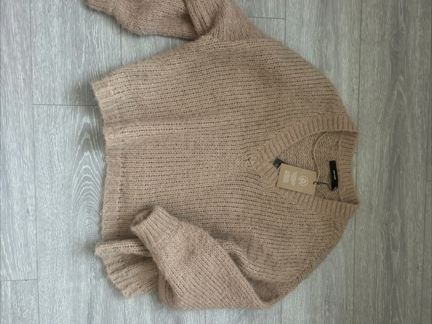 Cozy Vero Moda knit sweater in a lovely beige colour. Perfect for layering or wearing on its own during cooler days. It's in great condition and ready for a new home!