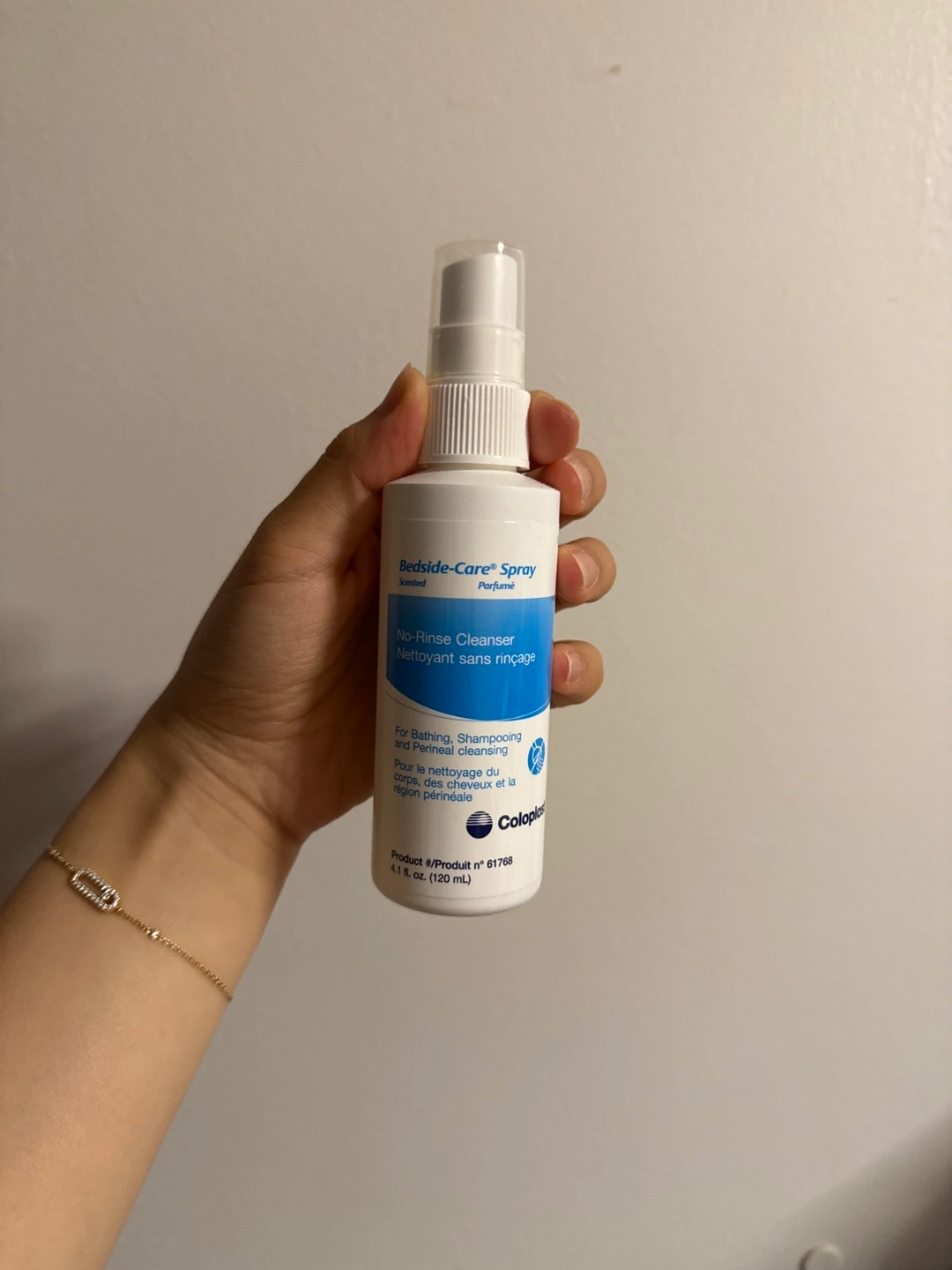 Selling a bottle of Bedside-Care Spray No-Rinse Cleanser. It's scented and perfect for bathing, shampooing, and perineal cleansing. The bottle contains 4.1 fl oz (120 mL)