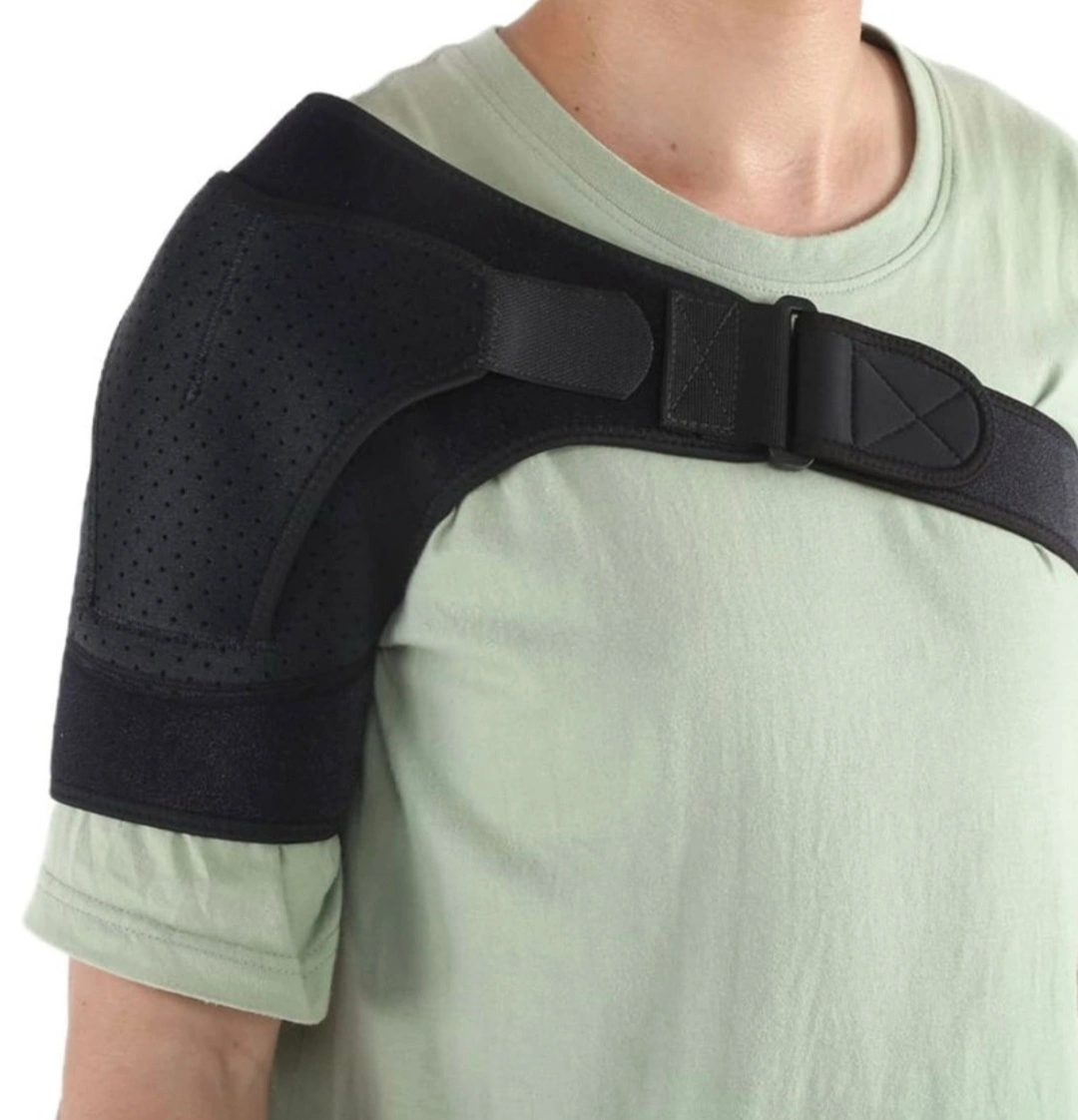 This is a brand new adjustable shoulder support brace, perfect for relieving pain and providing stability. It's made from breathable neoprene and designed to fit either shoulder, offering comfortable support during various activities. I'm selling it because I no longer need it. This brace is in good condition and ready to help someone else recover!