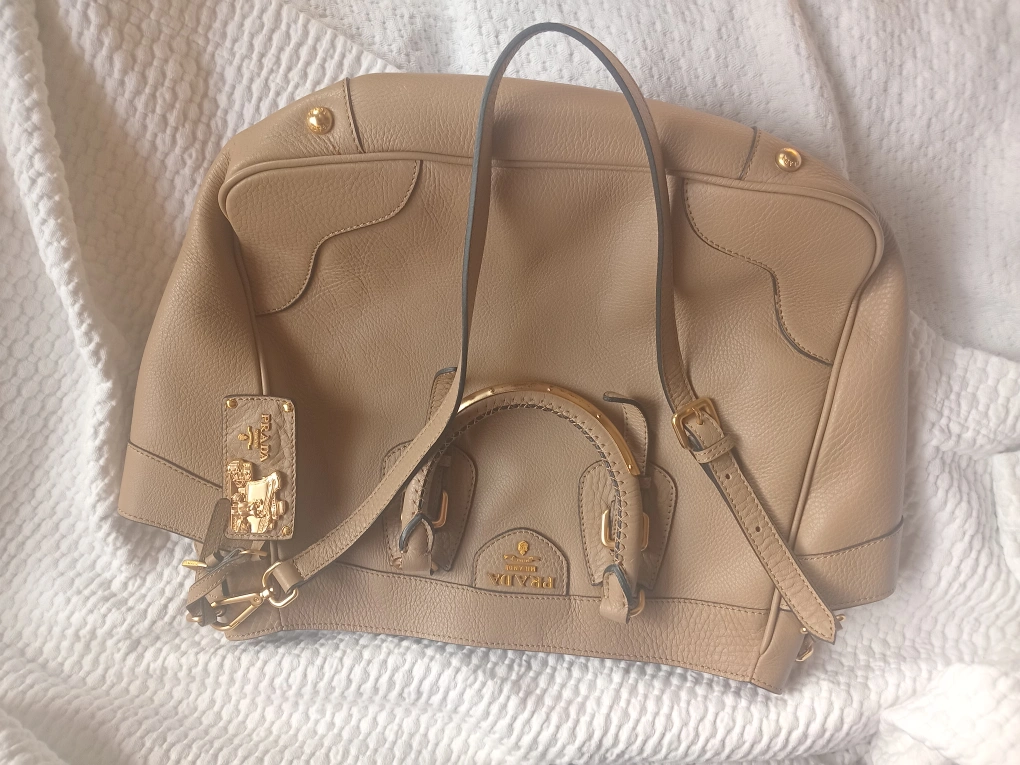 Selling a beautiful Prada Milano handbag in a lovely beige colour. It's made of high-quality leather and has a classic design. The bag is in good condition and ready for a new home!
