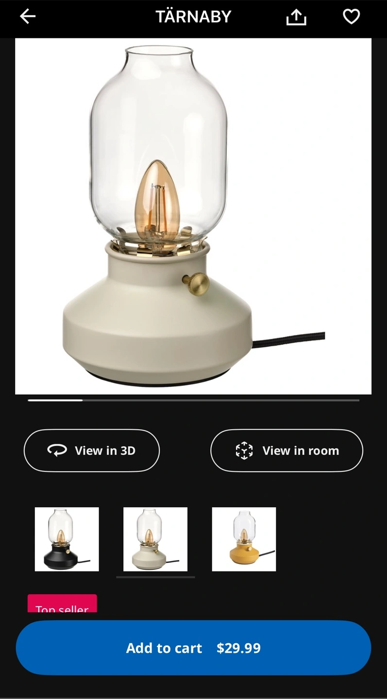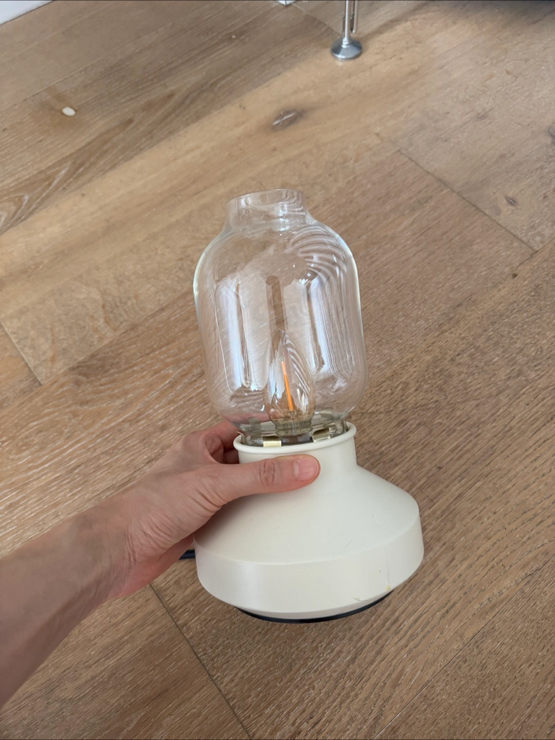 Selling a used IKEA TÄRNABY table lamp in good condition! It has a clear glass shade and a beige base. It gives a cozy light, perfect for a bedroom or living room.