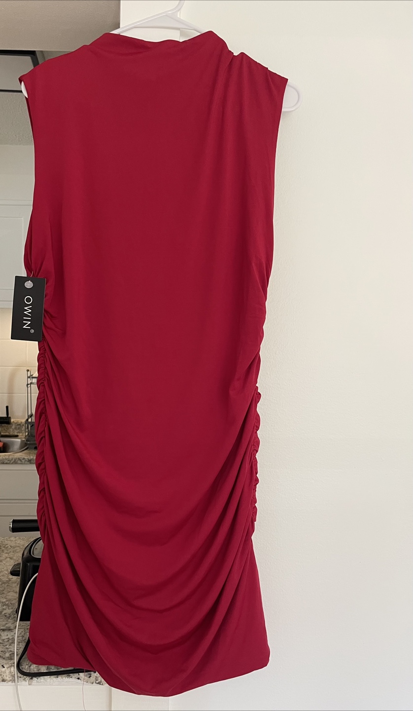 Selling a red ruched bodycon mini dress in size XL! It's made of 95% polyester and 5% spandex. Perfect for a night out or a special occasion