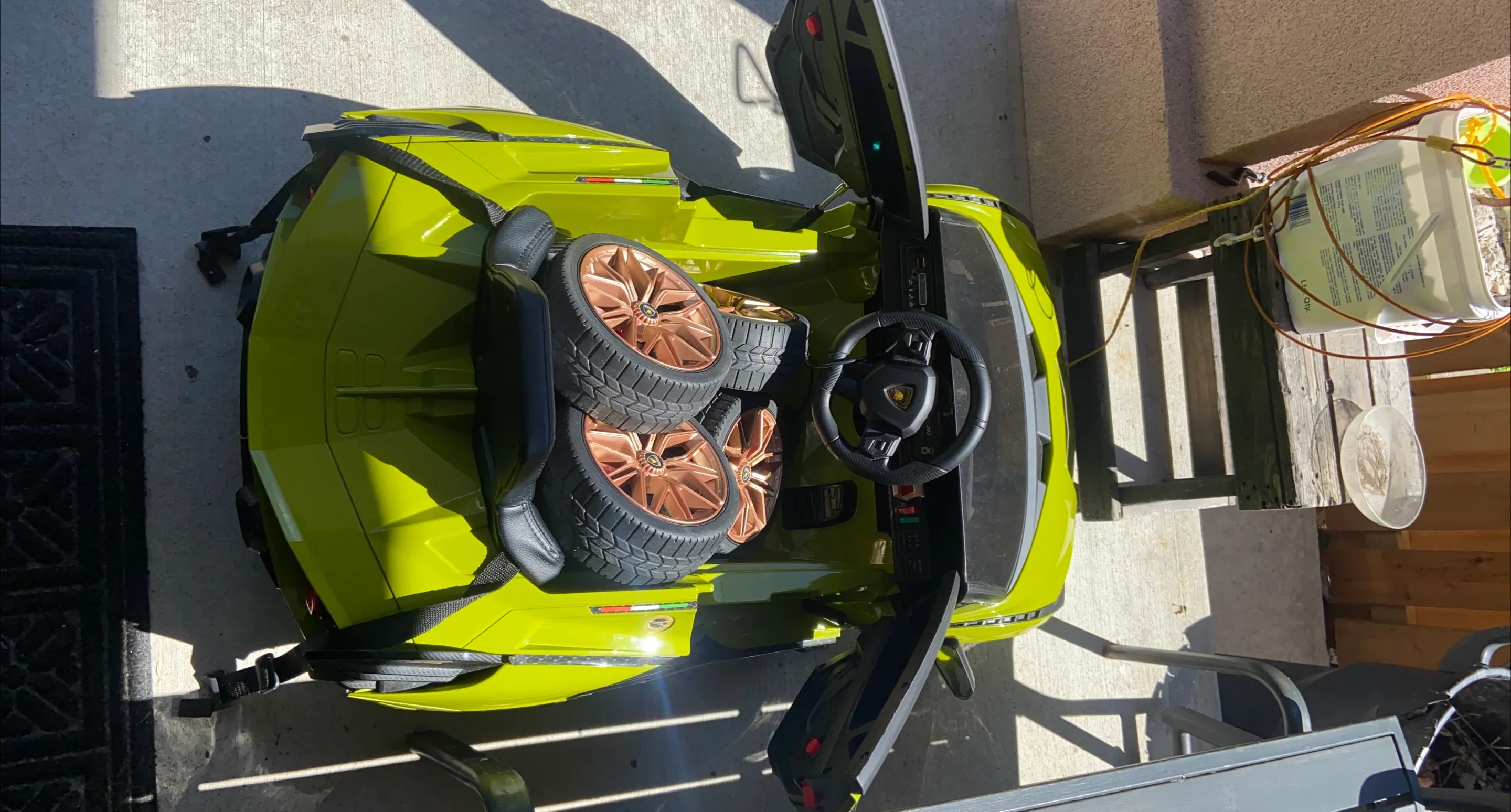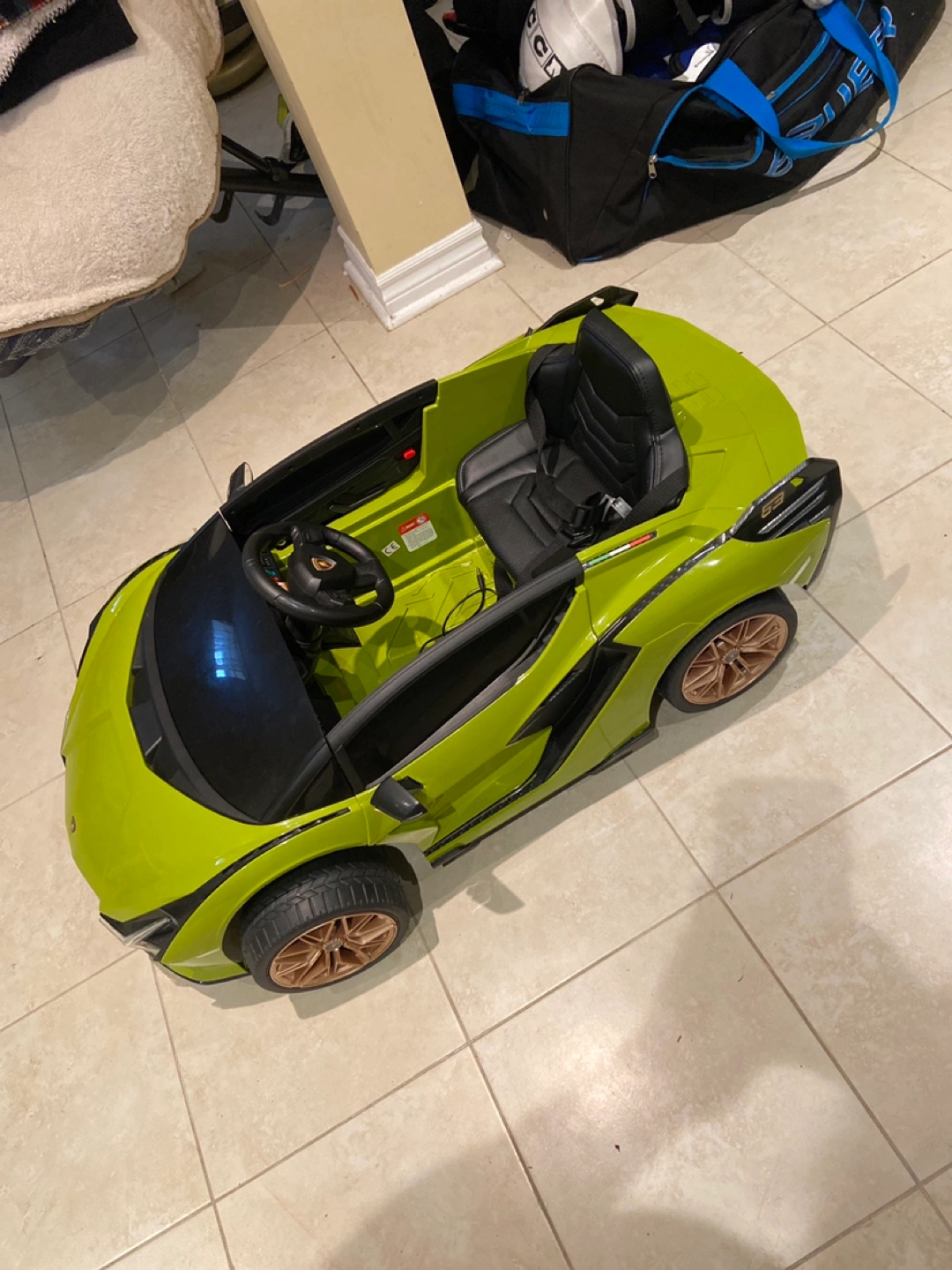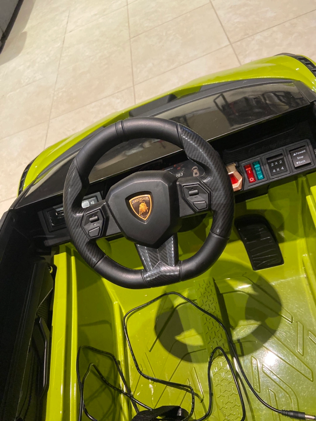 Lamborghini kids ride-on car in a vibrant green colour! . Great for a photo studio for pictures