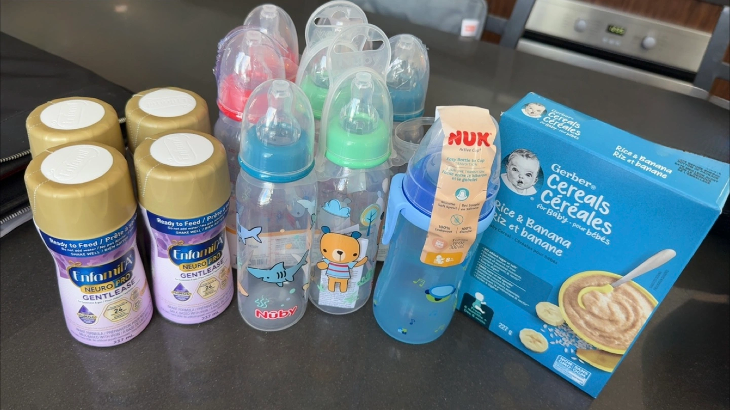 182a collection of baby items including Nuby and NUK bottles, Enfamil Gentlease formula, and Gerber Rice & Banana cereal for baby Good for parents looking to stock up on essentials Baby didn’t like them. You have to pickup .