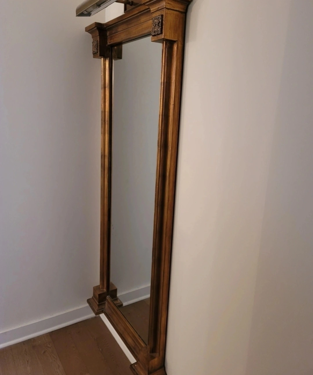Selling a full length mirror featuring a beautiful ornate wood frame. It would make a great addition to any room!
