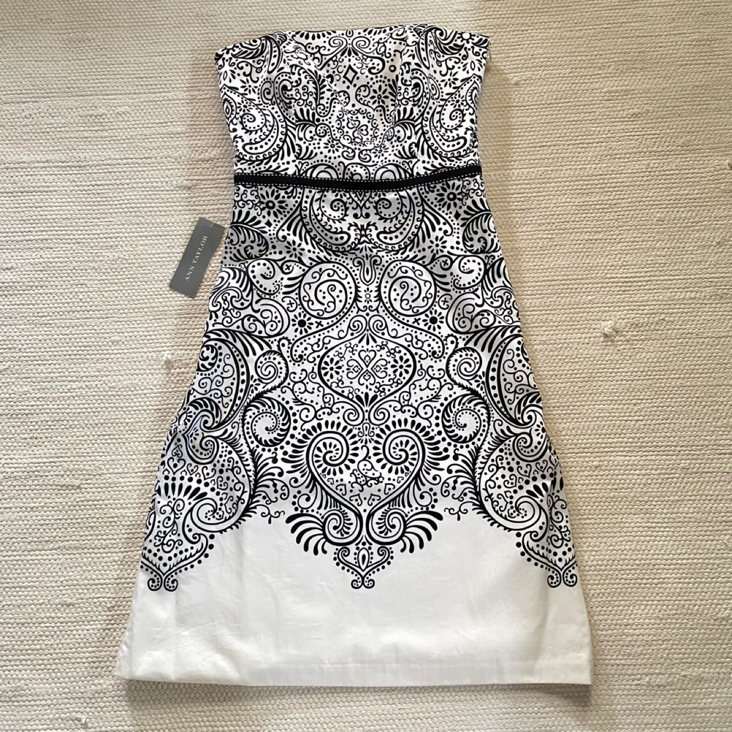 New with tags. Ann Taylor tube dress in size 0. It features a beautiful black and white pattern. The dress comes with detachable shoulder straps that can be worn with or without.