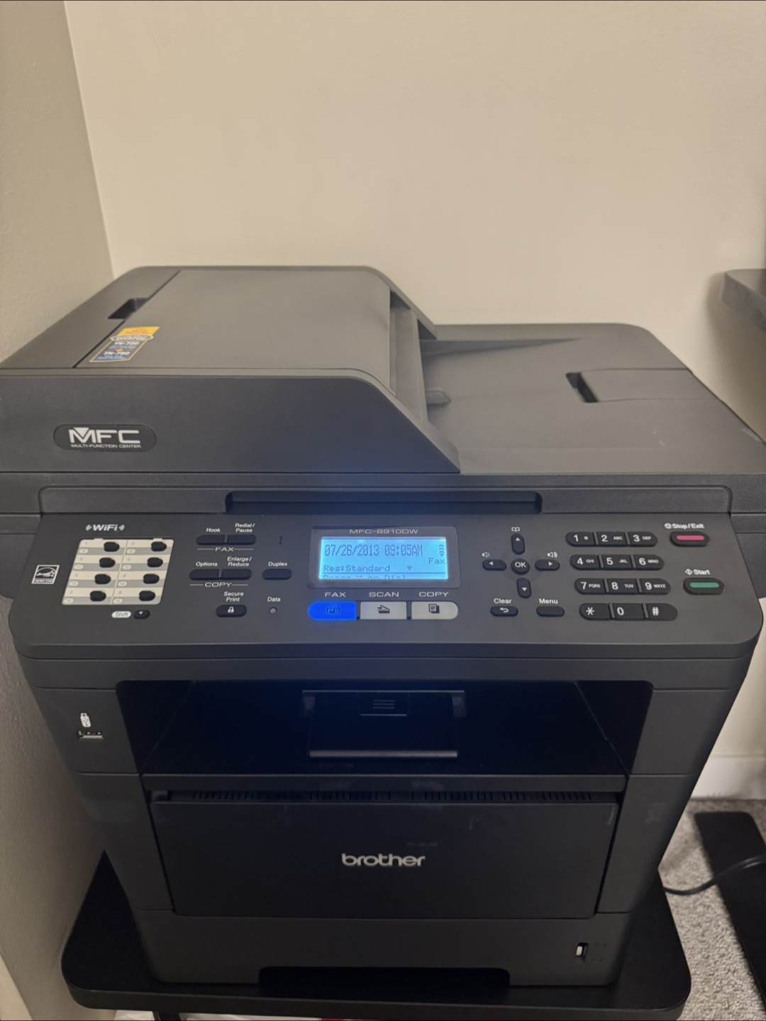 Gently used Brother MFC-8910DW Multifunction Wireless Business Class All-in-One duplex Printer / Scanner / Copy / Fax for wireless and wired black and white printing, scanning and copying.