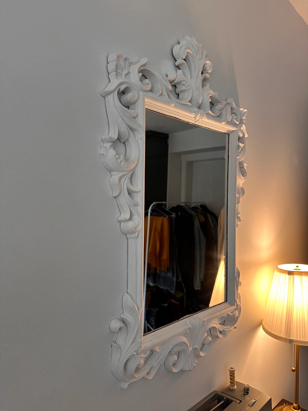 Selling a lovely ornate framed mirror. It's in great condition and would add a touch of elegance to any room! The frame is a beautiful white colour with detailed carvings.