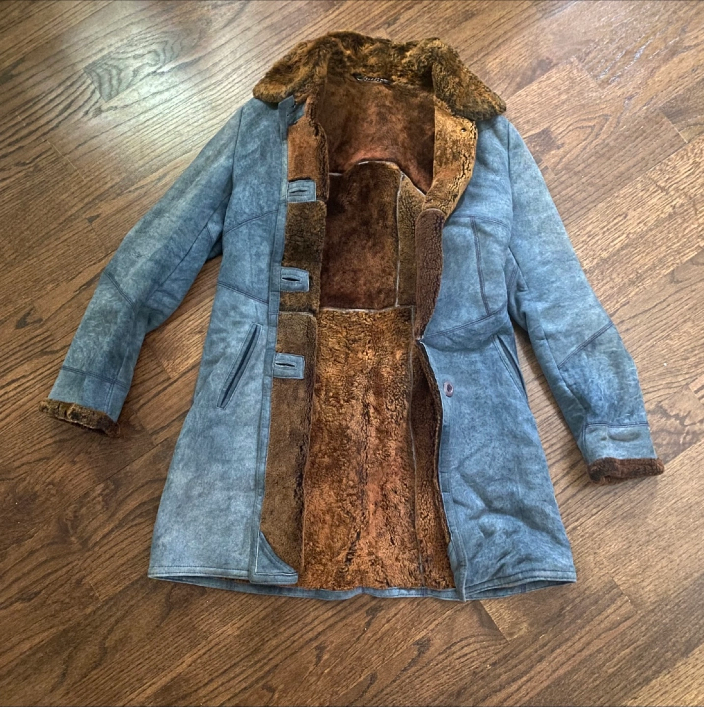Blue Suede Shearling Coat “ Wolff of Canada” Small