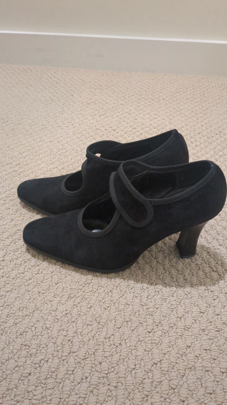 Selling a pair of Stephane de Raucourt black heels. They are in great condition like new and sole and heels have been reinforced and ready for a new home! They have a classic Mary Jane style with a comfortable heel height of 2 inches in size 6 or 36.