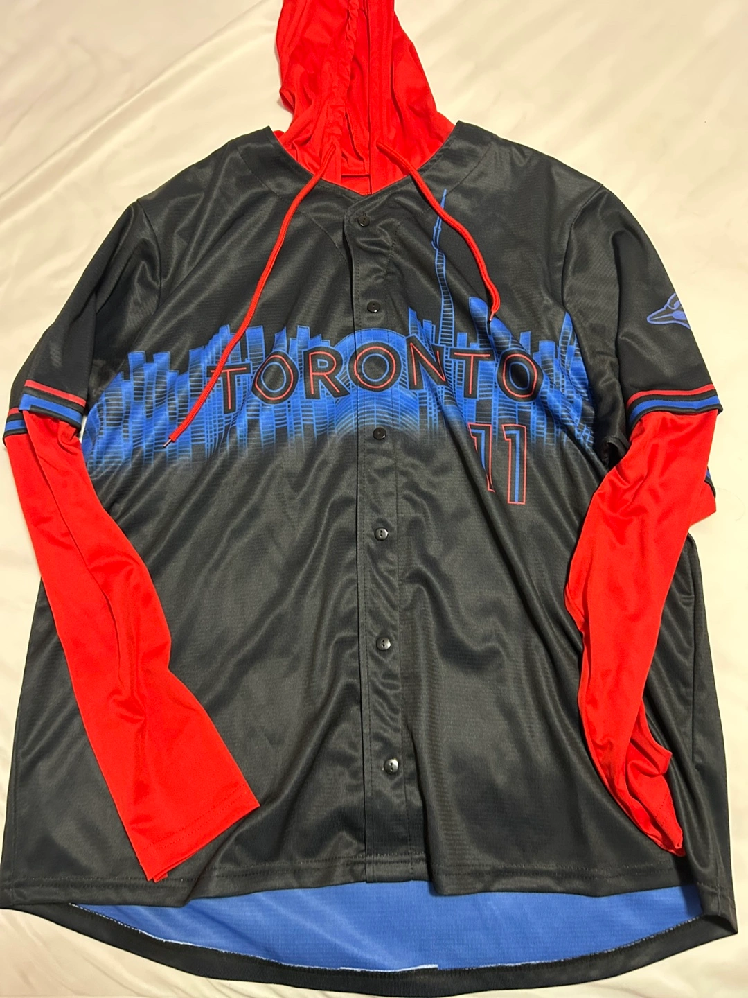 Selling a Varsity Cup Toronto hoodie in adult size XL. The hoodie is black and features a Toronto skyline design with red sleeves and a red hood. It's in great condition and ready for a new home!