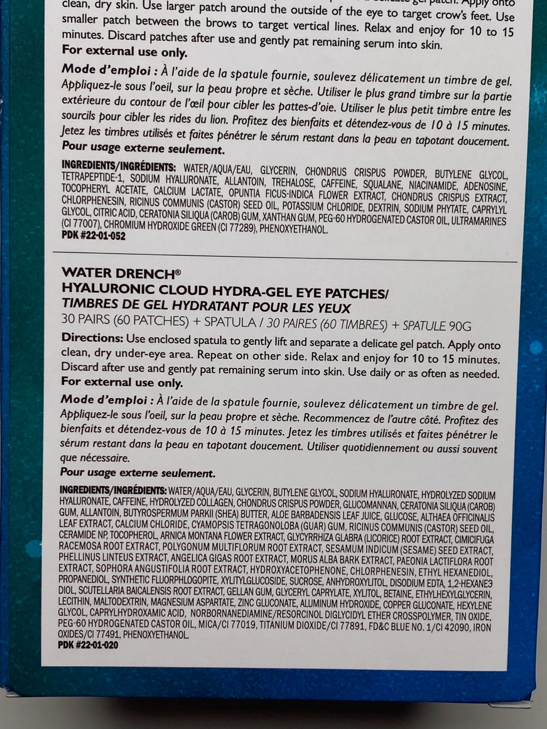 - Water Drench Hyaluronic Cloud Hydra-Gel Eye Patches (30 pairs) + spatula