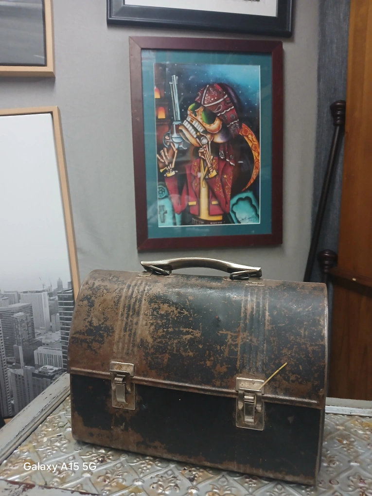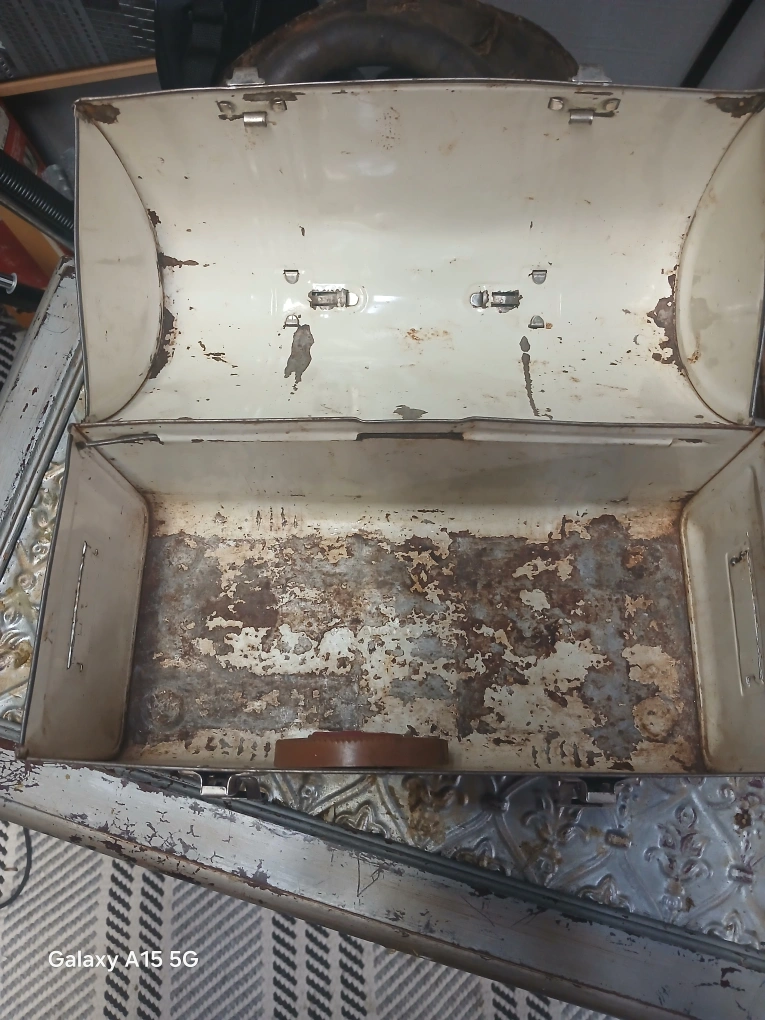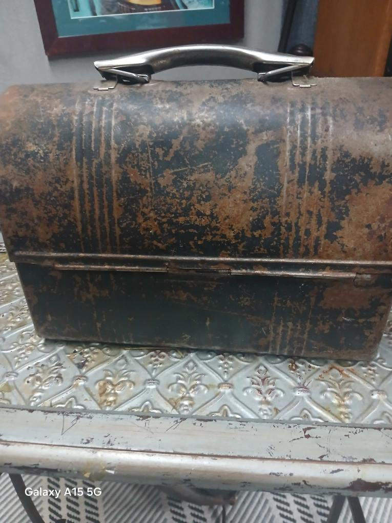 Selling a vintage metal lunchbox with a lot of character! It shows signs of wear and rust, adding to its unique, rustic charm. Perfect for collectors or anyone looking for a cool, old-school piece.