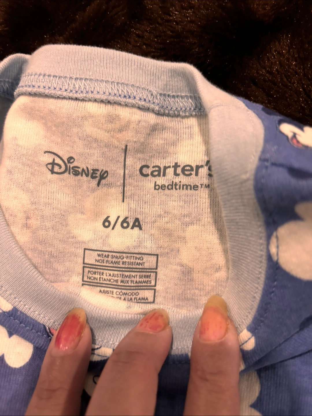 I'm selling a brand new with tags Carter's bedtime pajamas! These adorable PJs feature a Disney Mickey Mouse pattern. They are size 6/6A and are a cute blue colour. Perfect for your little one!