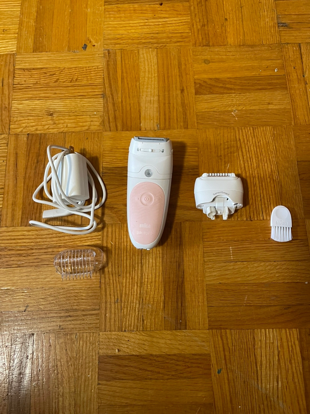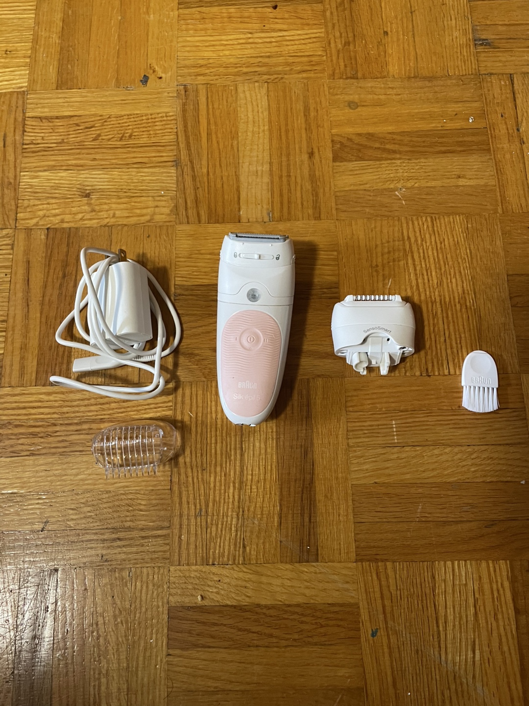 gently used, comes with a brush, charger, shaver, shaving guard and soothing cover for the epilator.