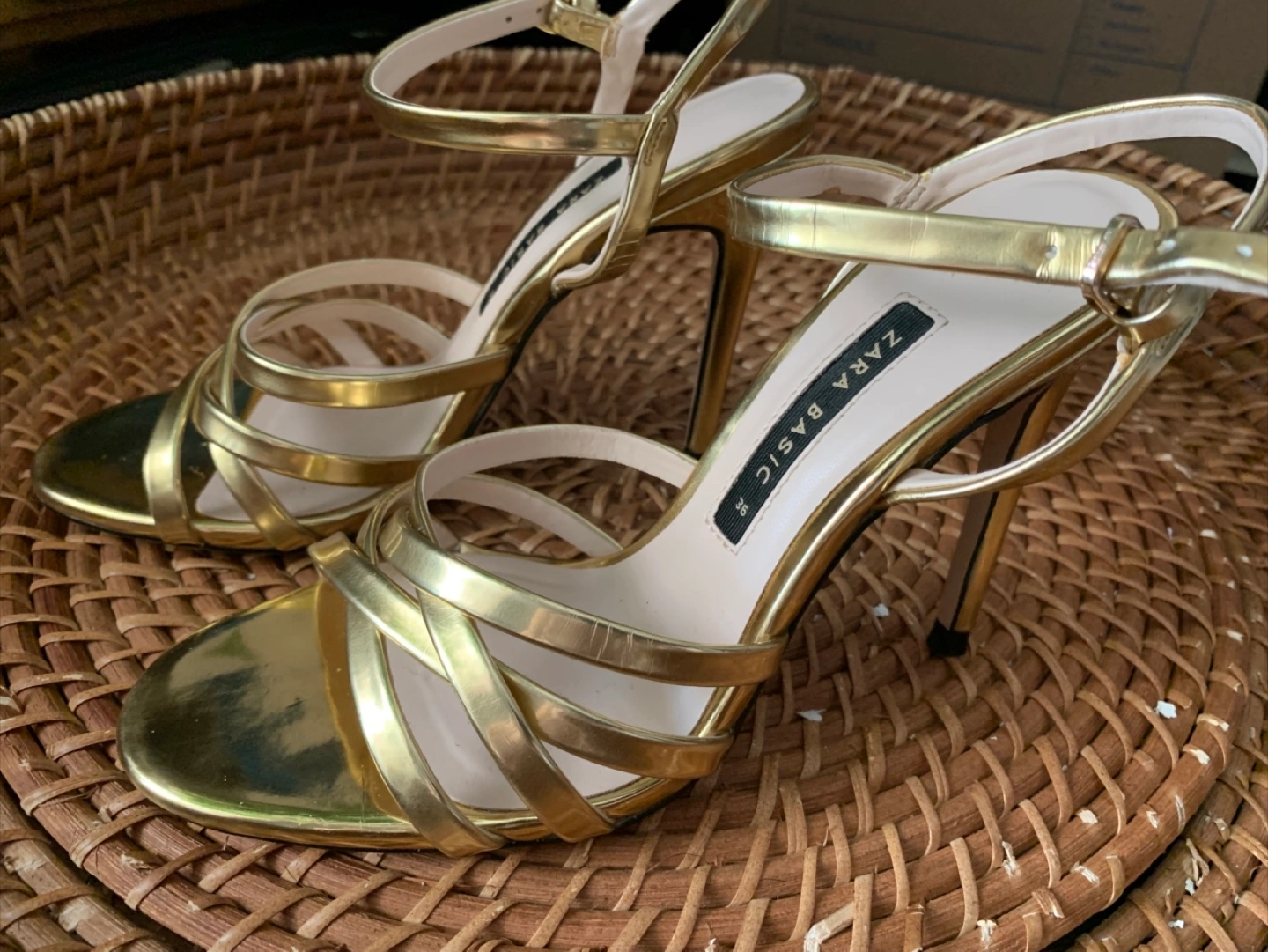 310Selling a pair of Zara Basic gold heels. They are a size 36. Perfect for dressing up any outfit! Worn once.