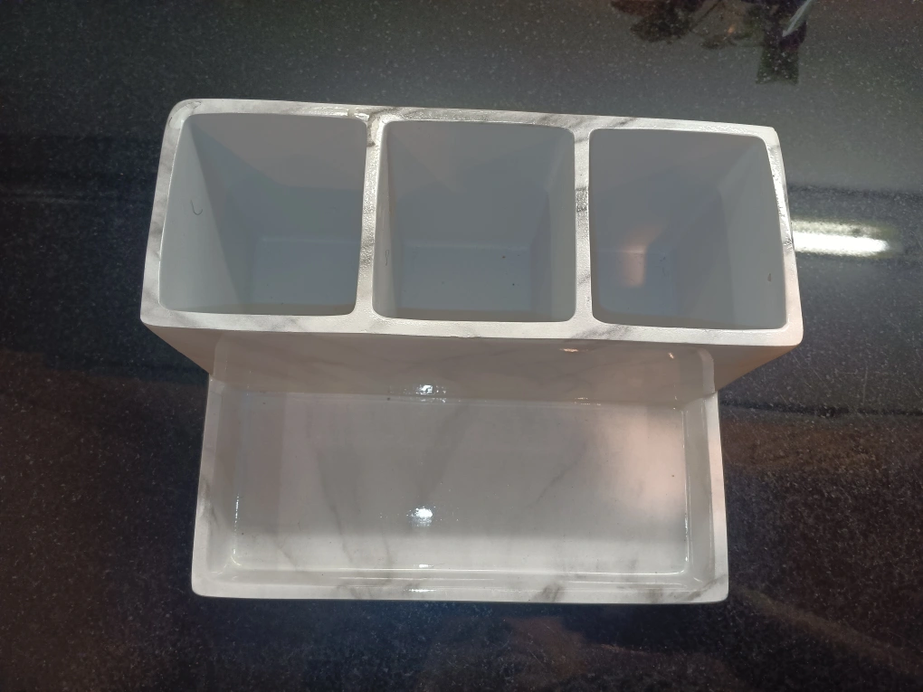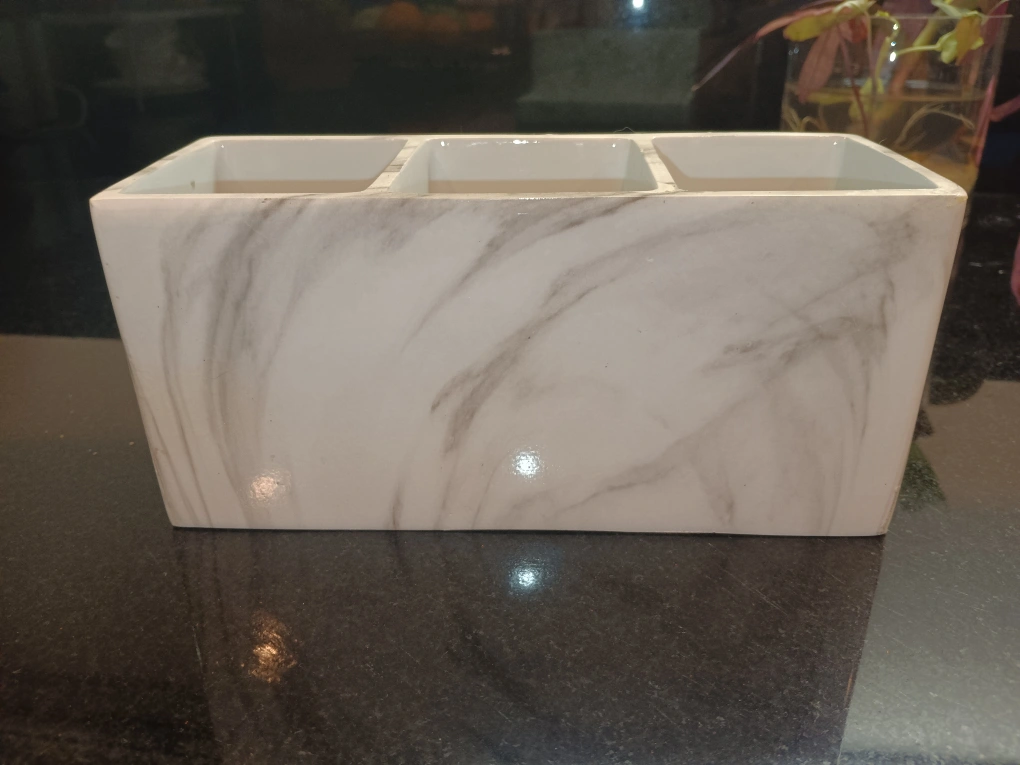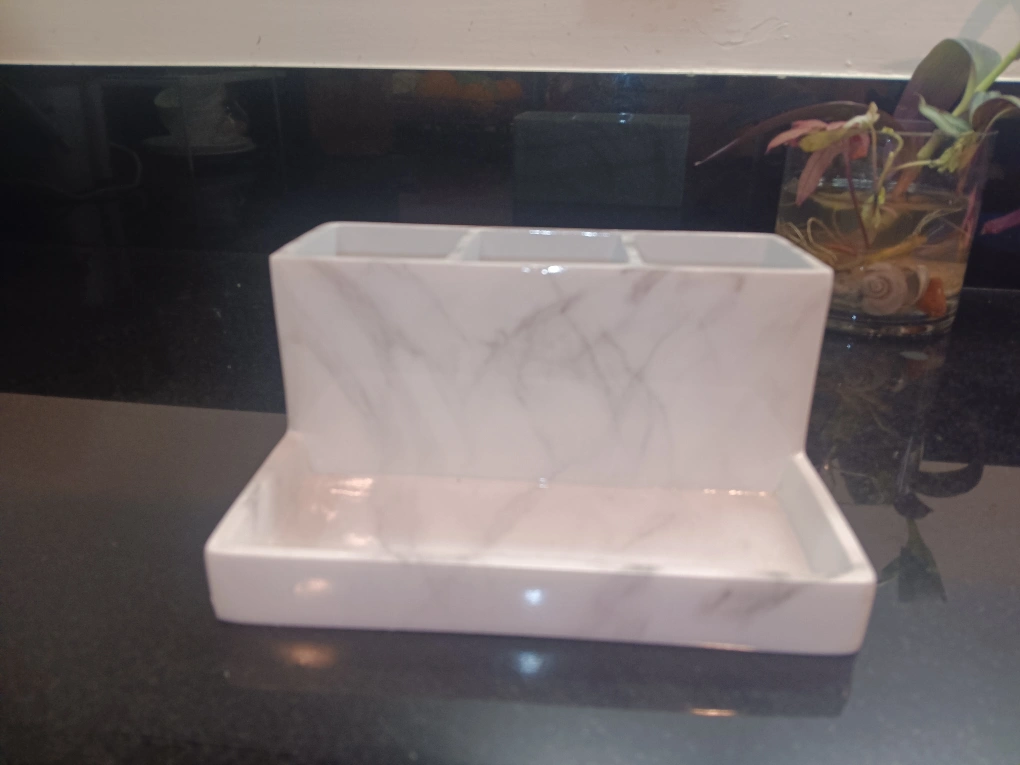 665This is a Caro brand organizer with a marble look. It has three compartments and a base. The original price tag from Marshalls is still on it for $14.99