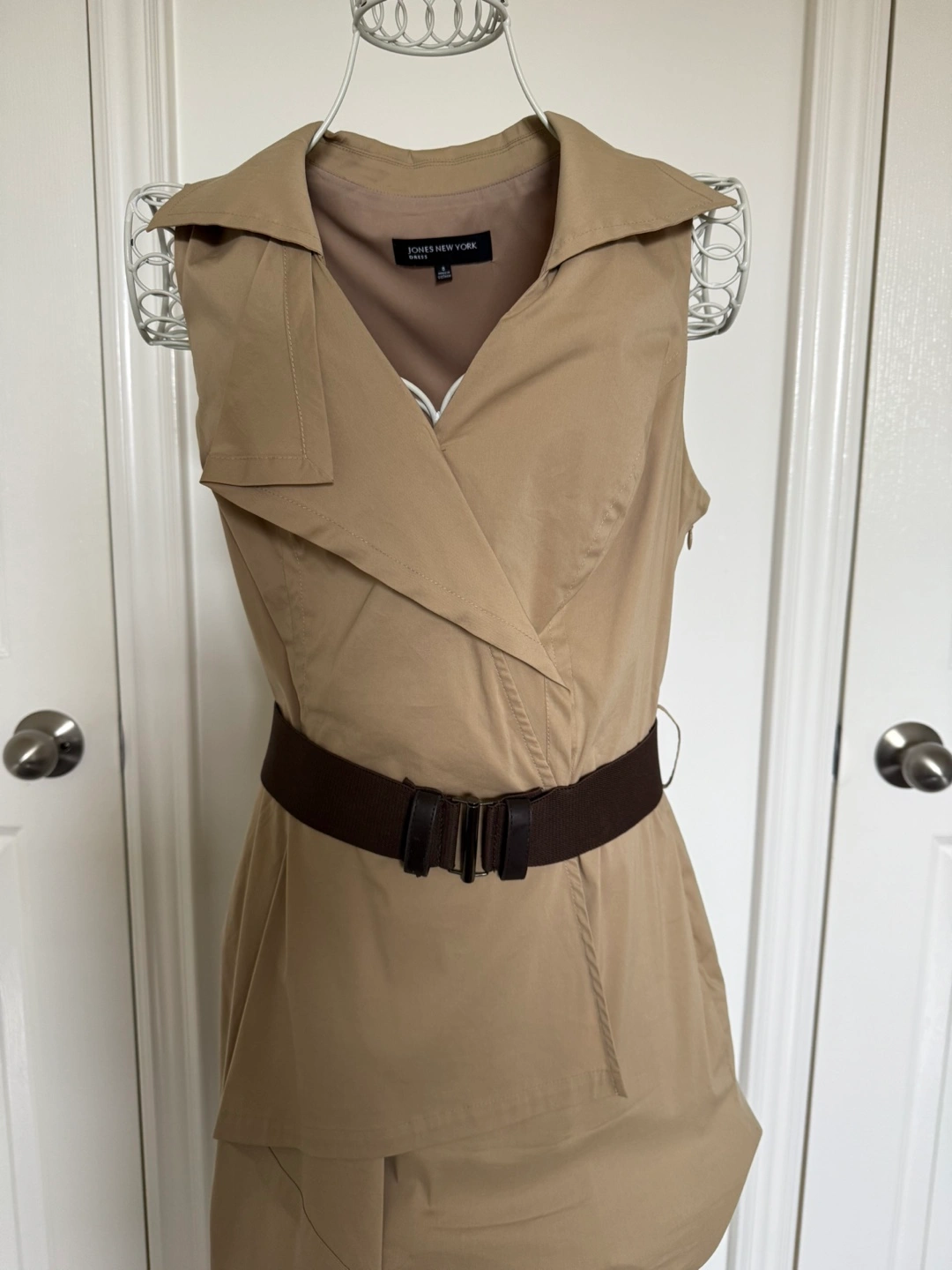 372Here's a stylish Jones New York dress in a lovely neutral colour. It's a size small with a small zipper on the left side. The dress features a unique design with a stretchy belted waist, perfect for a chic and polished look! Fantastic price! Smoke free home. OBO and Cash only. Please pick up in Mississauga. All sales final and bundle offers are welcome. A freebie is included with every purchase.