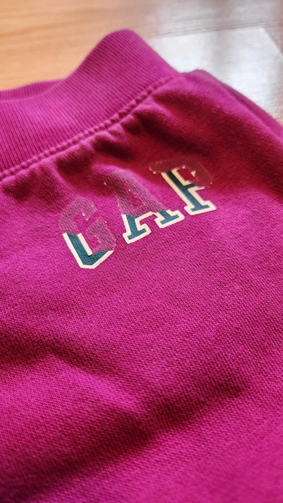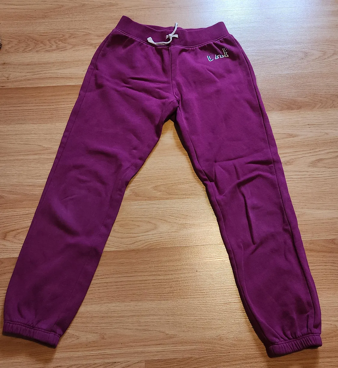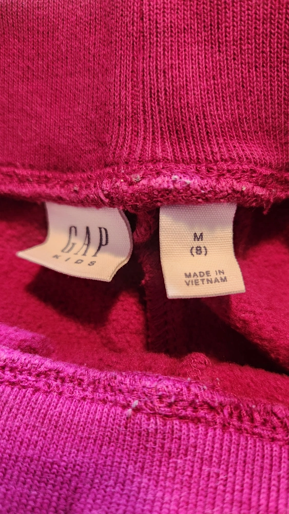 Selling a pair of GAP Kids sweatpants in purple! They are a size medium (8). Perfect for keeping cozy. Great condition except for most of the GAP logo is worn away on the front as seen in the pic