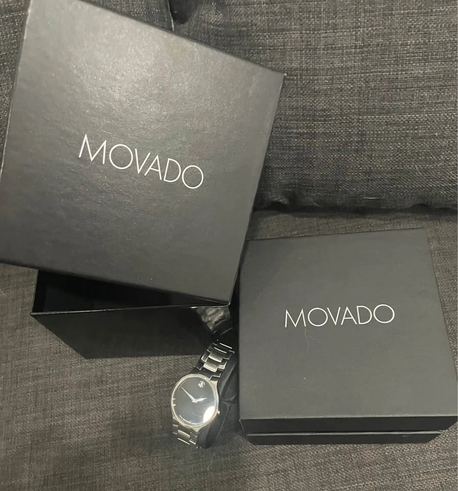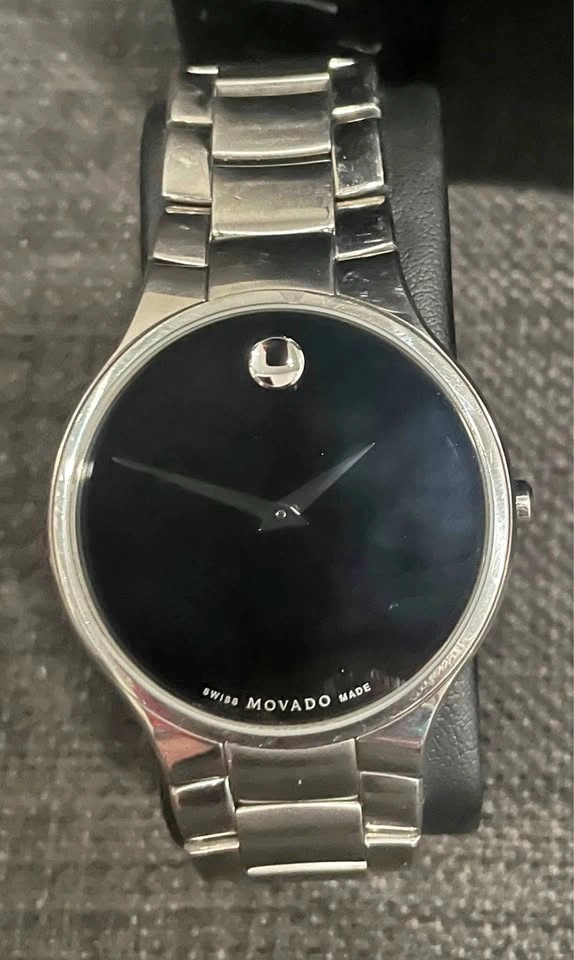 I have a silver Movado men’s watch with a black dial face. I still have the original boxes that it came in as well as extra lengths if you need to add them to it, which is actually pretty easy. Let me know if you have any questions. I’m asking $350 but would consider a reasonable offer.