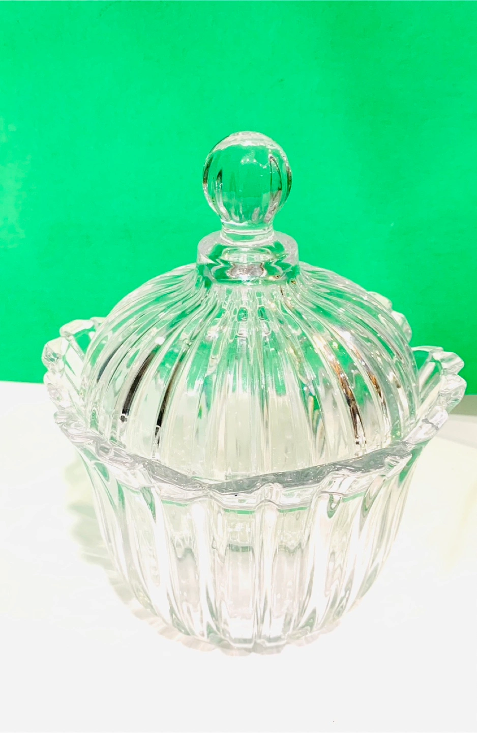 MAKE AN OFFER MADE IN JAPAN SOGA "Alexandria" Vintage Clear Crystal Candy Jar/Dish It's in EXCELLENT condition and would look perfect on any table or counter. The intricate design catches the light beautifully, making it a charming addition to your home decor