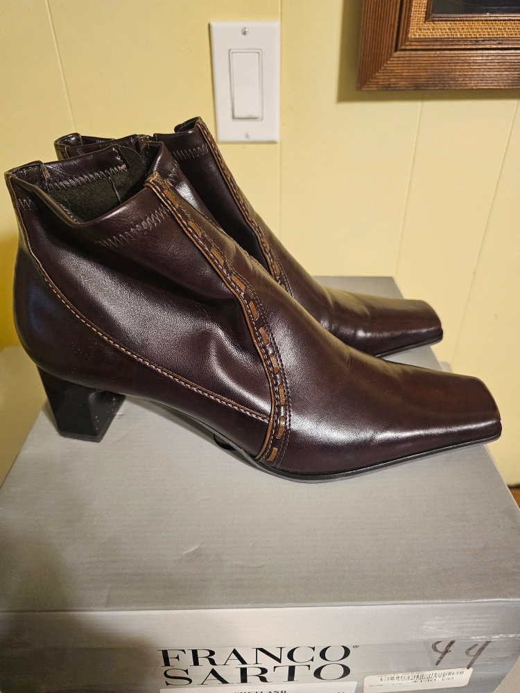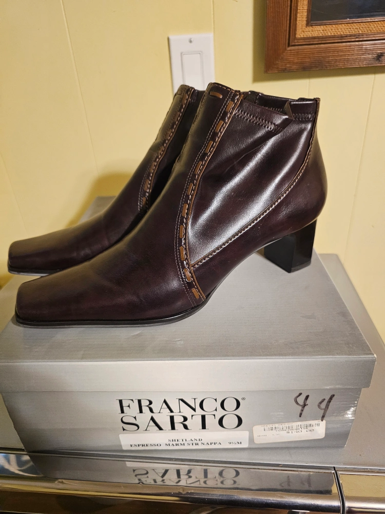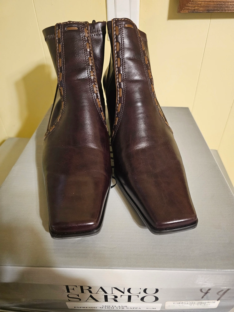 These Franco Sarto Shetland boots are in great shape and ready for a new home! They are a beautiful espresso colour and size 9.5M. The box indicates they were originally $140. A stylish addition to any wardrobe!