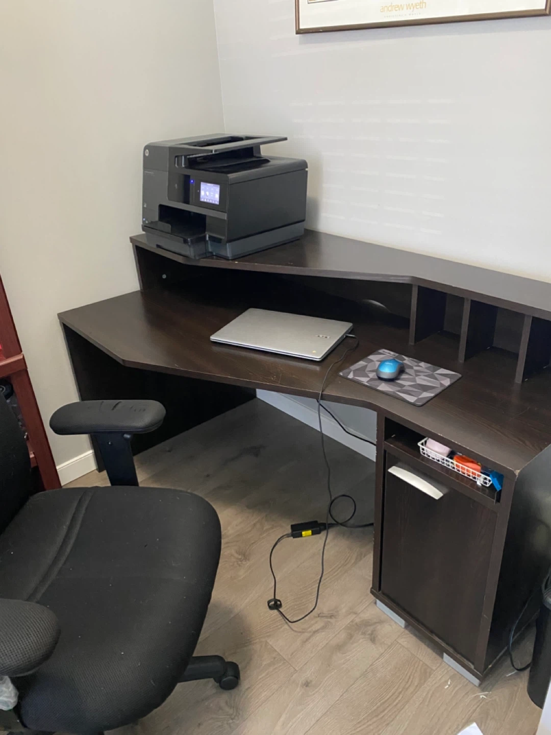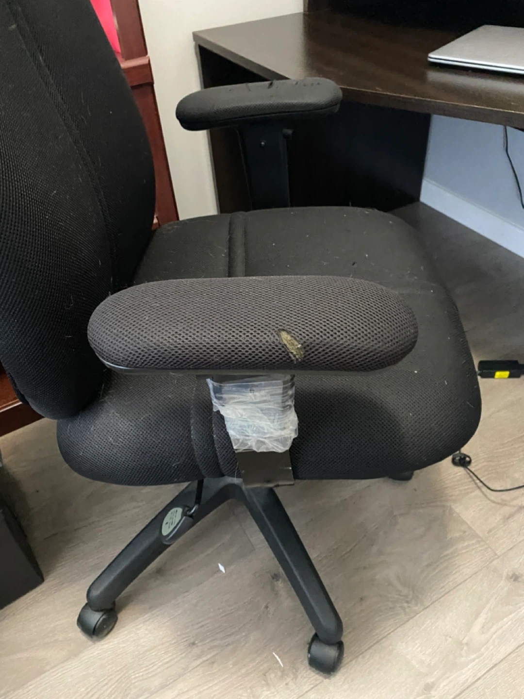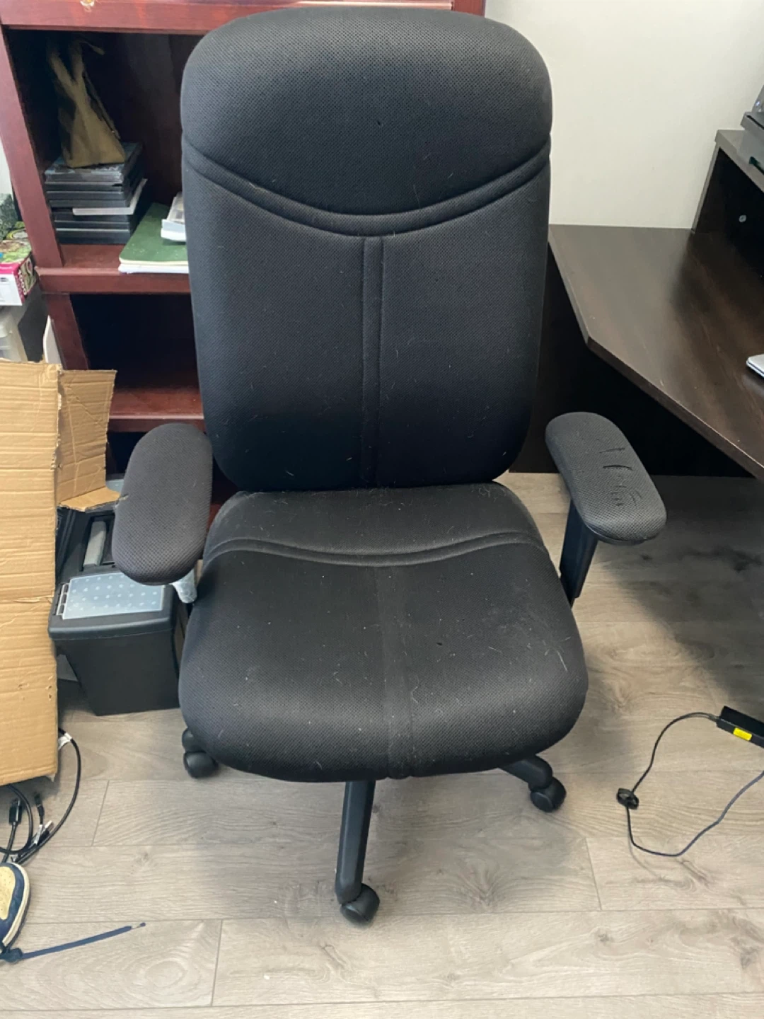 **FREE!! Must be picked up by Wednesday the 27th, as I’m moving** Used desk and office chair. Desk has some scratches, and chair has a wobbly arm and some tears in one arm cover. Chair is adjustable, desk has a cubby and a cupboard. For pick up in Auburn Bay SE.