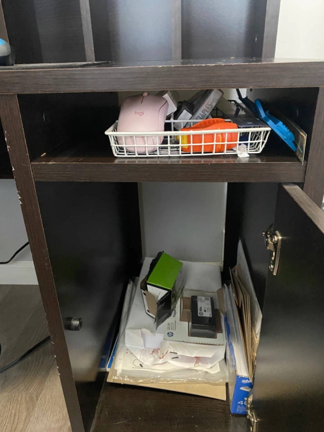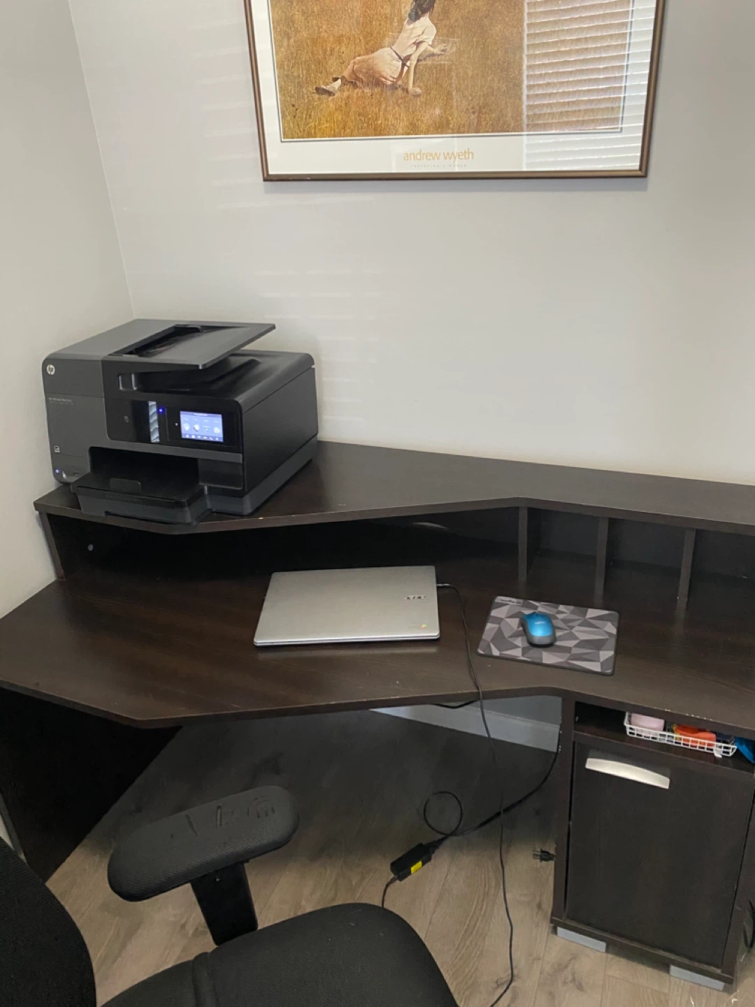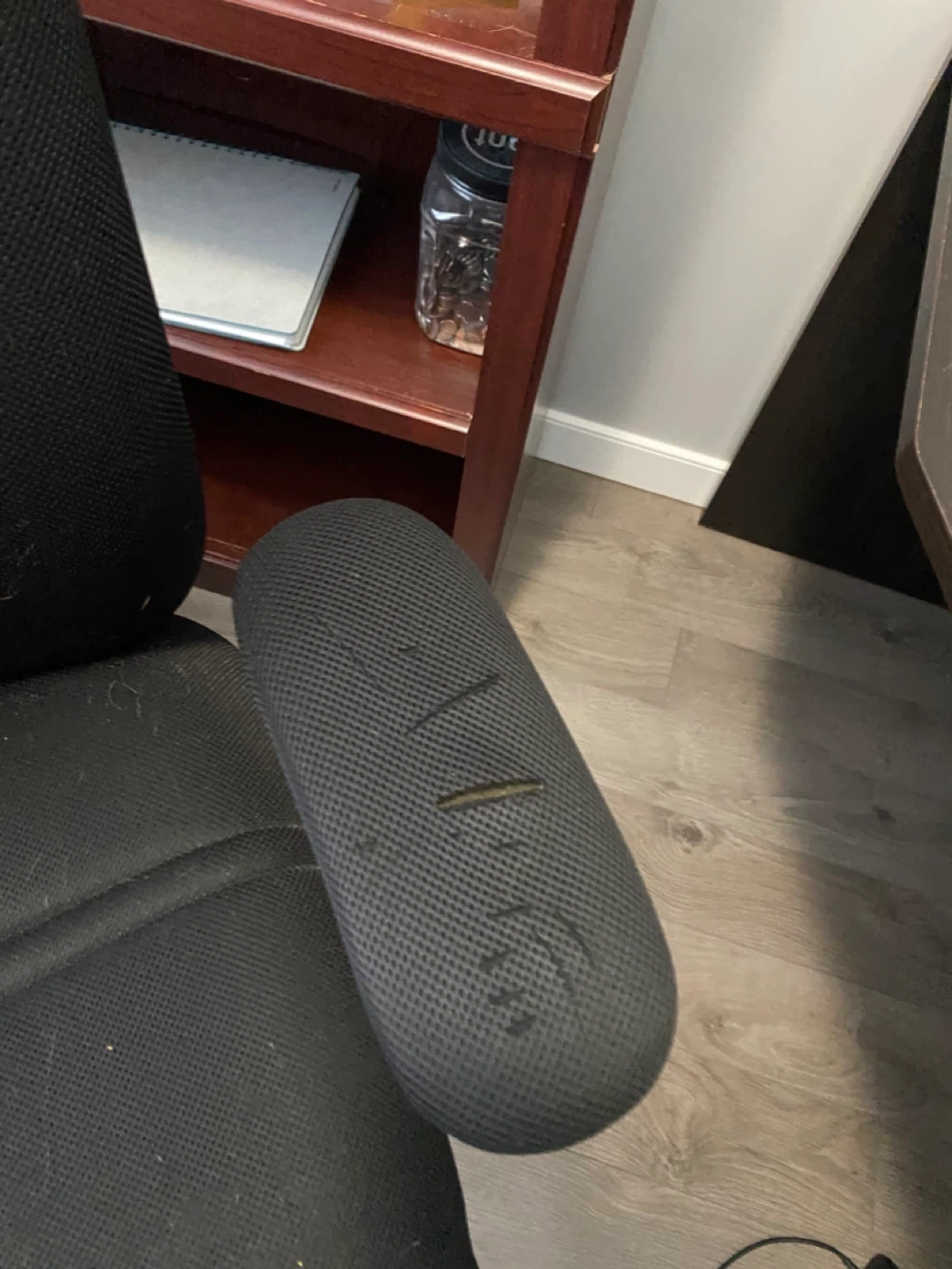 **FREE!! Must be picked up by Wednesday the 27th, as I’m moving** Used desk and office chair. Desk has some scratches, and chair has a wobbly arm and some tears in one arm cover. Chair is adjustable, desk has a cubby and a cupboard. For pick up in Auburn Bay SE.