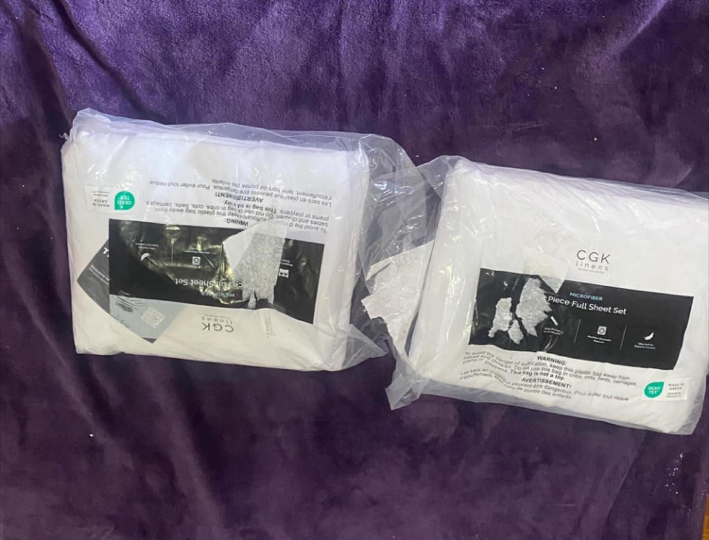 Queen Bed- Metallic Frame, Upholstered Headboard & Mattress