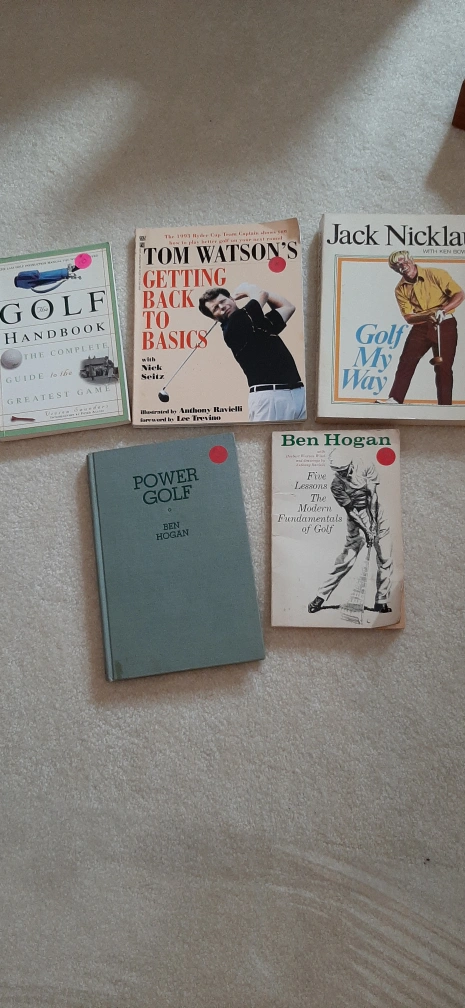 Golf Book Collection starting at $8 Sold individually. See pictures for individual pricing Includes: - Jack Nicklaus with Ken Bowden - Golf My Way - Tom Watson's Getting Back to Basics - Ben Hogan - Five Lessons The Modern Fundamentals of Golf - Ben Hogan - Power Golf - The Golf Handbook The Complete Guide to the Greatest Game by Vivien Saunders