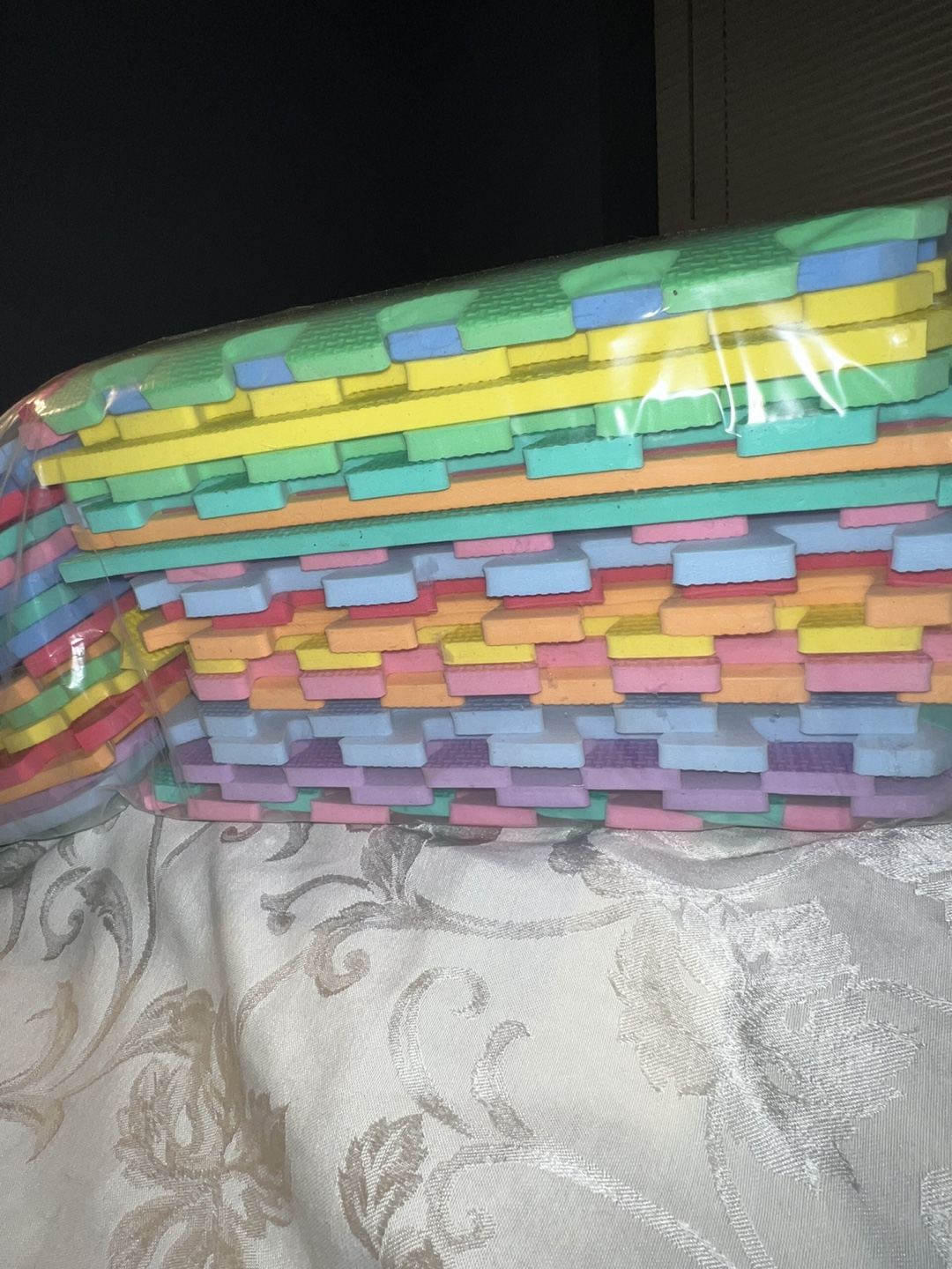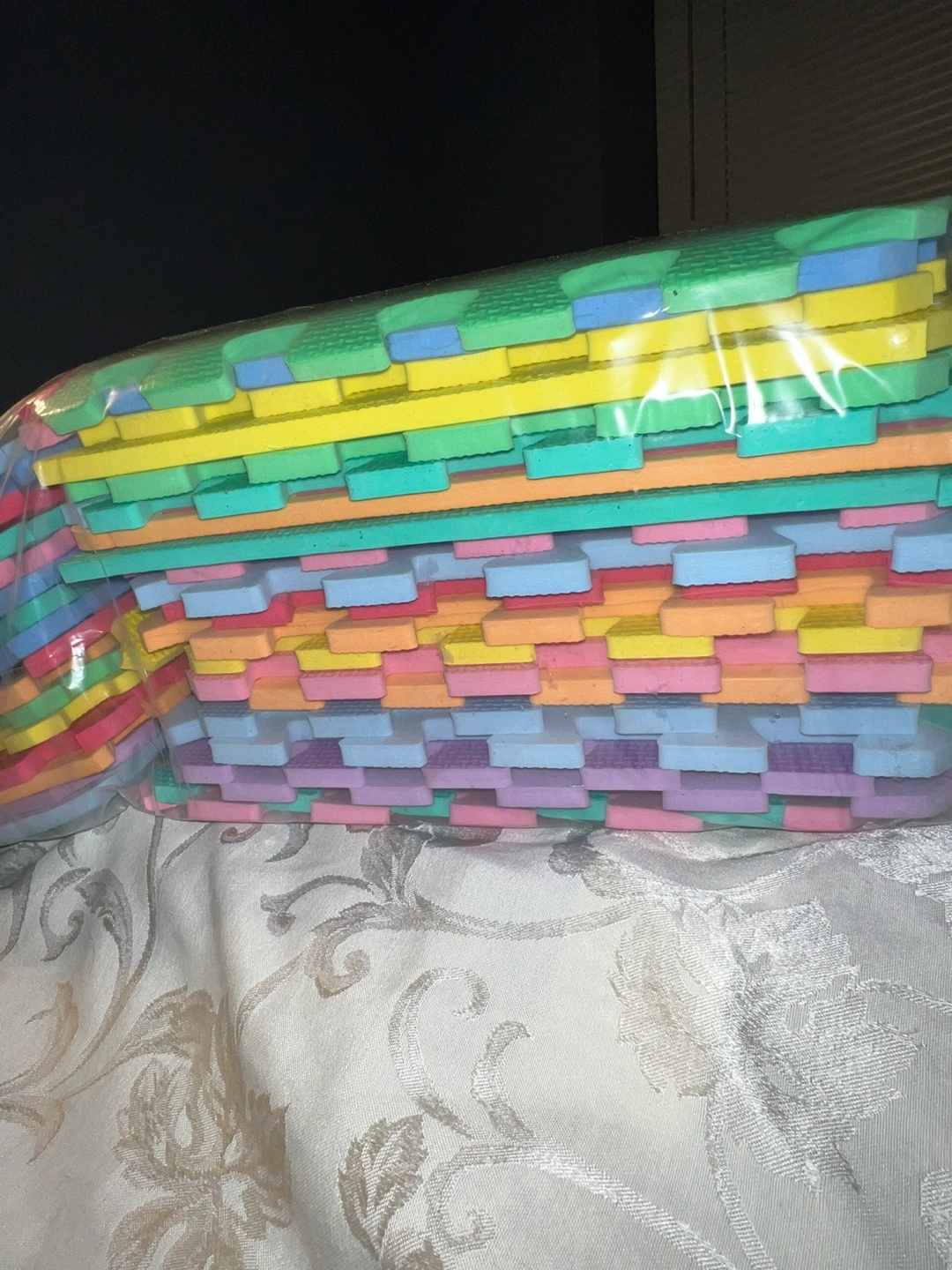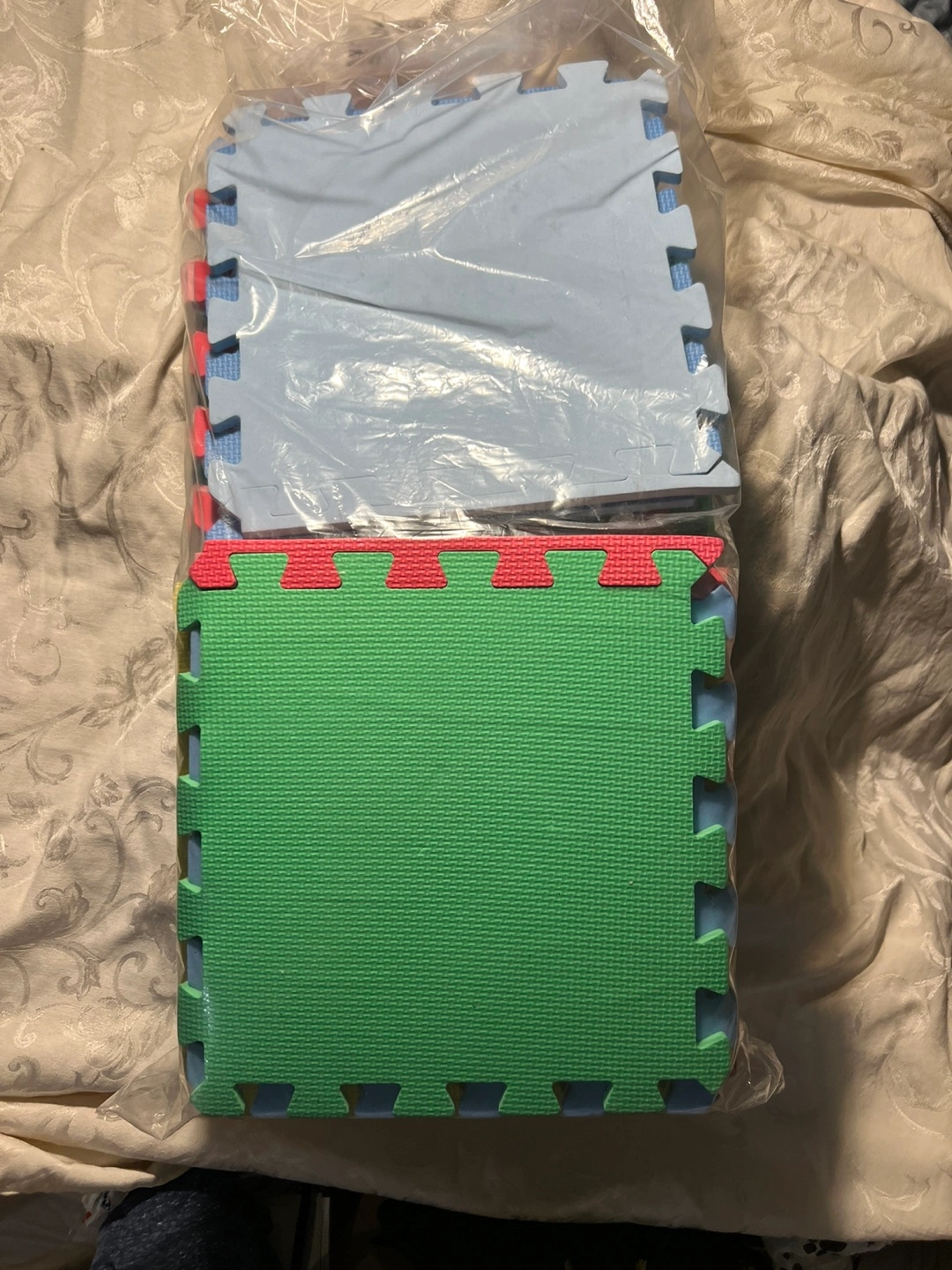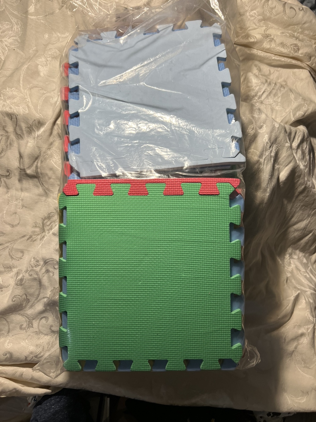 Selling a set of colorful foam play mat tiles! These are perfect for creating a soft and safe play area for kids. They're easy to assemble and clean, making them a convenient choice for any home. 6’x6’ when put together square.