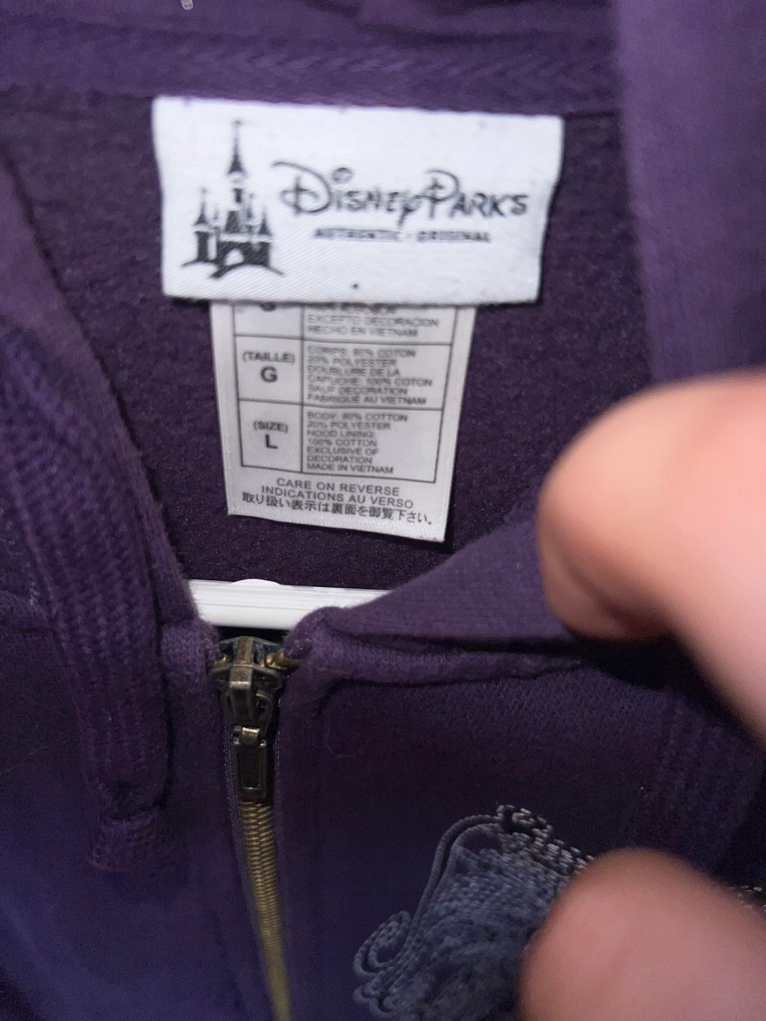 Disney Parks Purple Zip-Up Hoodie (Large)