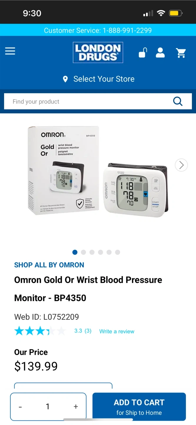Selling a brand new/never used Omron Gold Or wrist blood pressure monitor, model BP4350. It's in great condition and comes with the original box. Clinically proven accurate and a #1 Doctor Recommended Brand. Originally bought for $139.99 from London Drugs