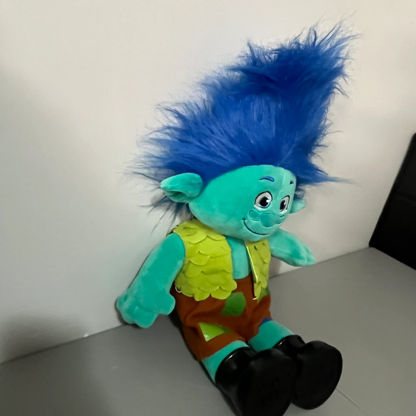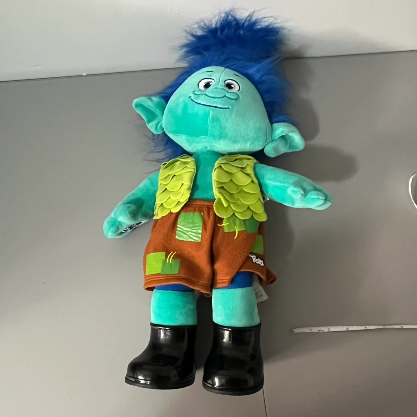 Selling a Build-A-Bear Trolls Branch plush toy! It's in great condition and ready for a new home. This cute plush features Branch from the Trolls movies with his signature blue hair and outfit. The brand's logo is on the feet.
