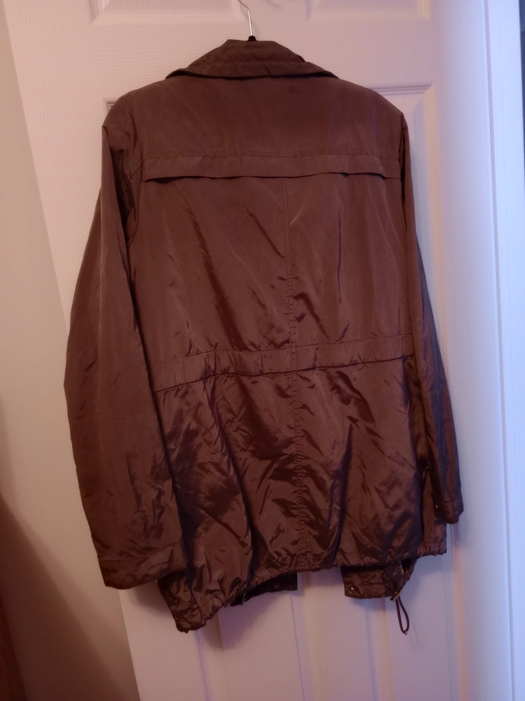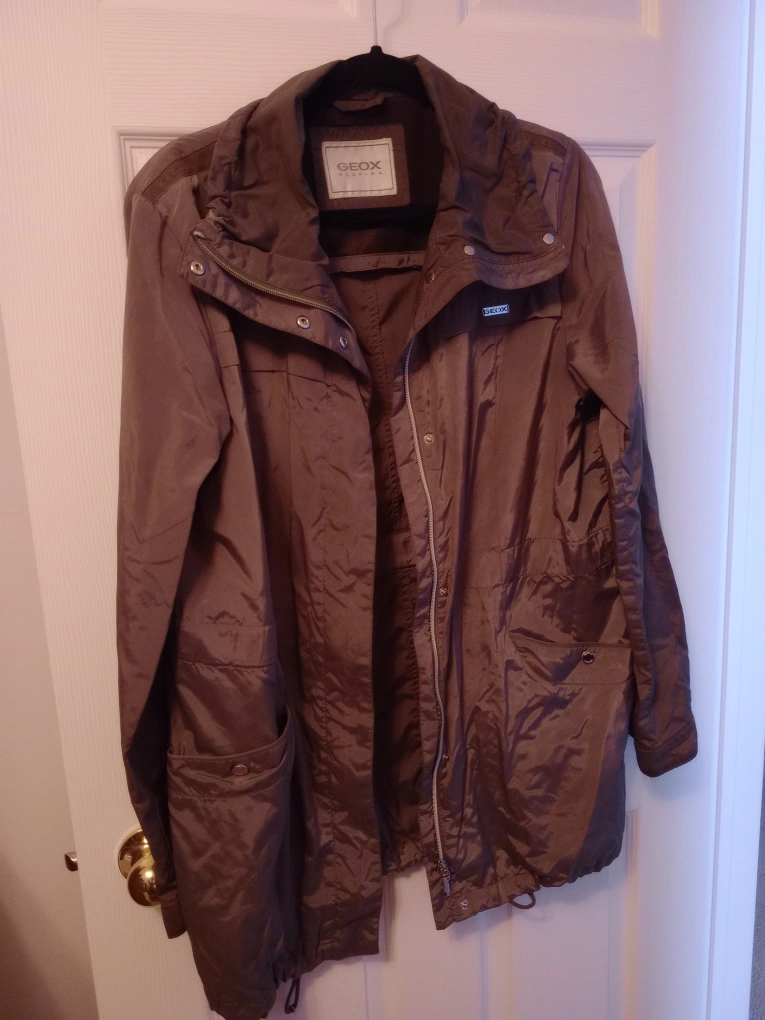 This is a stylish Geox jacket, perfect for transitioning between seasons. The jacket is a great olive green colour and is in excellent condition.It's lightweight yet provides ample protection against wind and light rain. A versatile piece for any wardrobe!