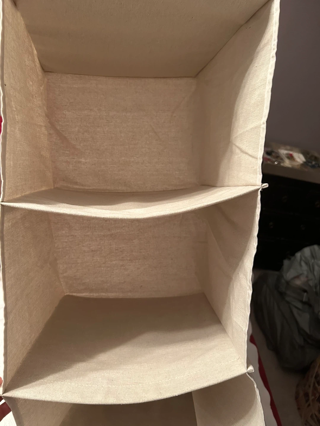 Squared Away hanging closet organizer. It's perfect for adding extra storage space to your closet! This organizer is made of a durable canvas material and features 6 deep compartments to keep your items neat and tidy. I redid my closets so I barely used it Non smoking no pets.
